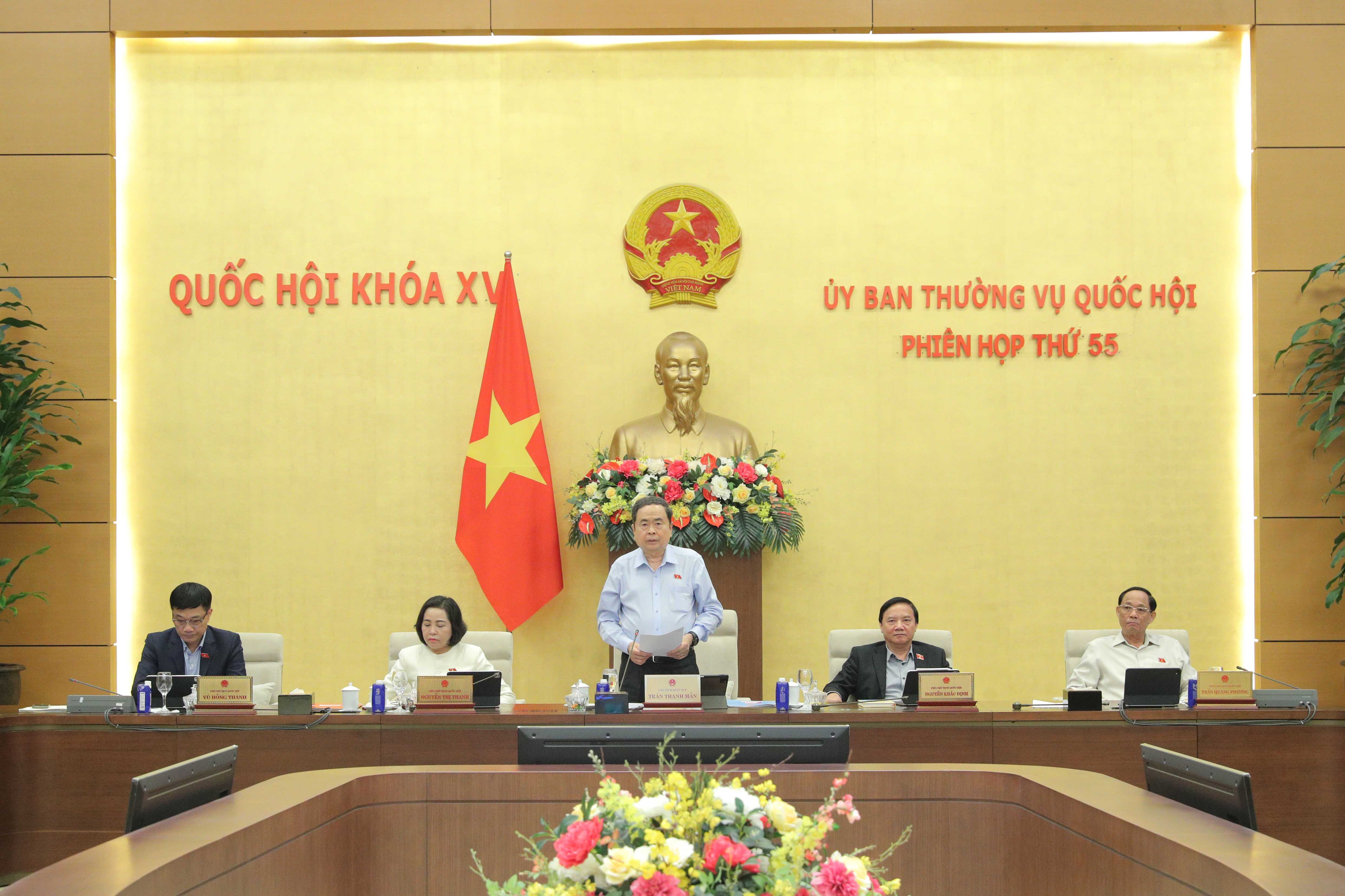 Phát biểu tại phiên họp, Chủ tịch Quốc hội Trần Thanh Mẫn nêu rõ, UBTVQH đánh giá cao tinh thần chủ động, trách nhiệm cao của các cơ quan trong rà soát, đề xuất chuẩn bị nội dung của Kỳ họp và cơ bản nhất trí với các nội dung dự kiến Kỳ họp thứ Nhất, Quốc hội khóa XVI, trong đó có nội dung quan trọng ở đợt 1 là tập trung cho công tác nhân sự.