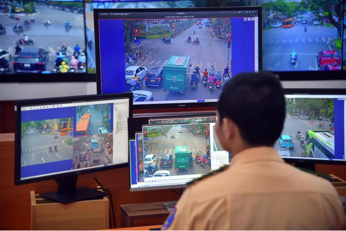 Cảnh sát giao thông Hà Nội theo dõi tình hình giao thông qua camera giám sát