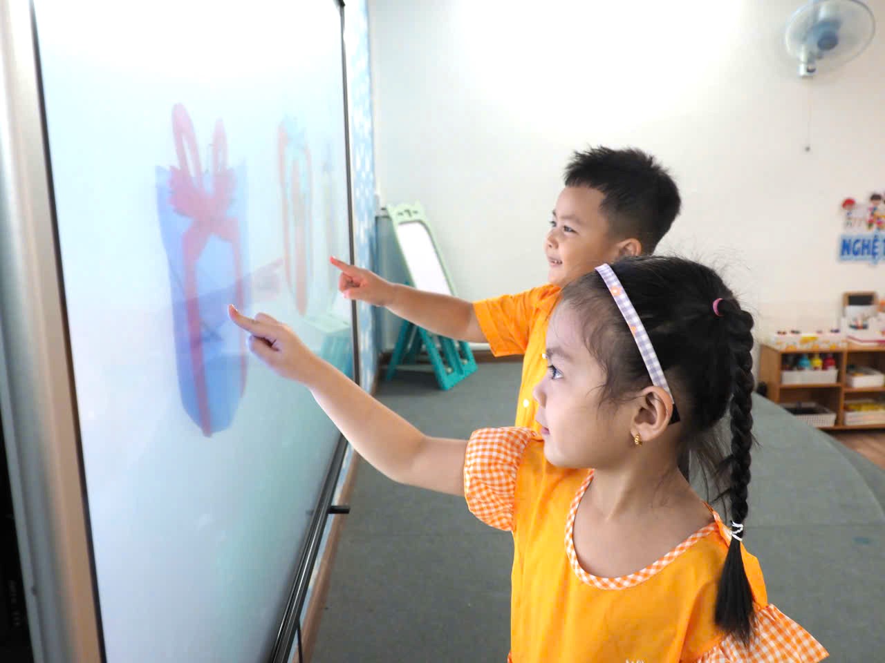 Học sinh Trường Mầm non Vàng Anh (phường Chợ Quán, TPHCM) trong giờ học có ứng dụng AI