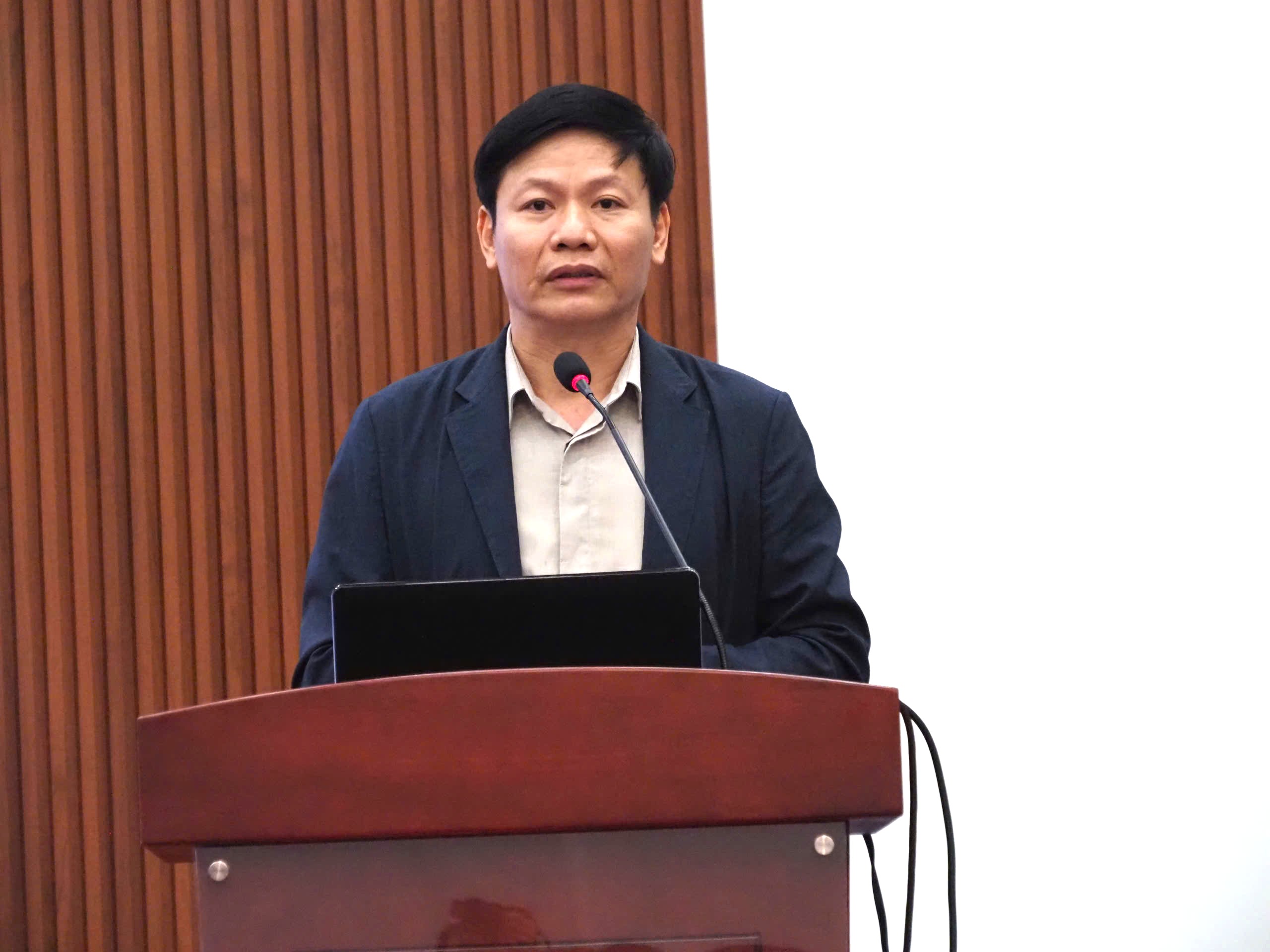 PGS.TS Nguyễn Thanh Đề, Vụ trưởng Vụ Giáo dục mầm non (Bộ GD-ĐT) phát biểu tại hội thảo sáng 26-11