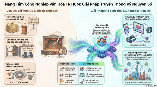 Không dừng lại ở việc mổ xẻ thực trạng, tham luận đã phác thảo một lộ trình cụ thể để TP.HCM thực sự trở thành trung tâm CNVH khu vực, dựa trên bài học thành công từ Hàn Quốc, Trung Quốc và Anh Quốc. Giải pháp cốt lõi được đề xuất là Multimedia (Đa phương tiện).