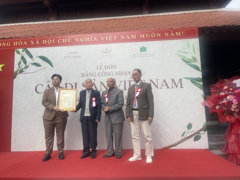 Nhân dịp Kỷ niệm 95 năm Ngày hội Đại đoàn kết toàn dân tộc (ngày 18/11/1930 - 18/11/2025), sáng 22/11, Hội Bảo vệ Thiên nhiên và Môi trường Việt Nam phối hợp với Khu nghỉ dưỡng chăm sóc sức khỏe SenNa và chính quyền phường Vũ Ninh, tỉnh Bắc Ninh tổ chức Lễ công nhận Cây di sản Việt Nam cho 12 cây cổ thụ.