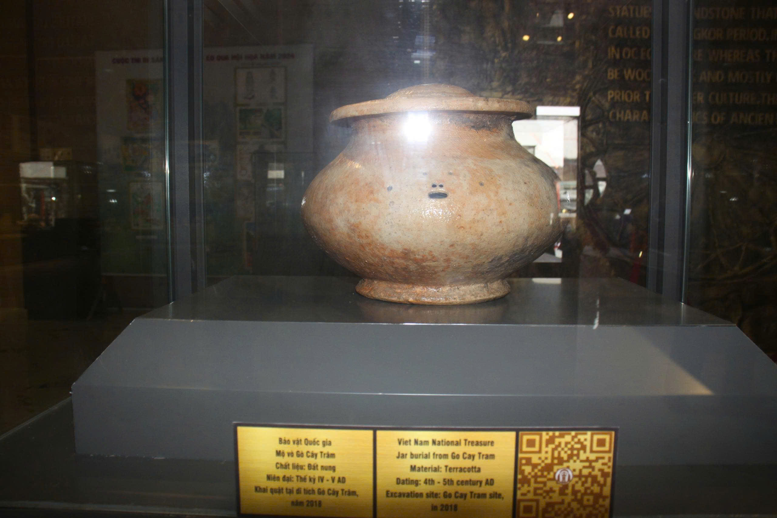 Mộ Vò Gò Cây Trâm - Bảo vật quốc gia được trưng bày tại Nhà trưng bày văn hóa Óc Eo, xã Óc Eo, tỉnh An Giang.
