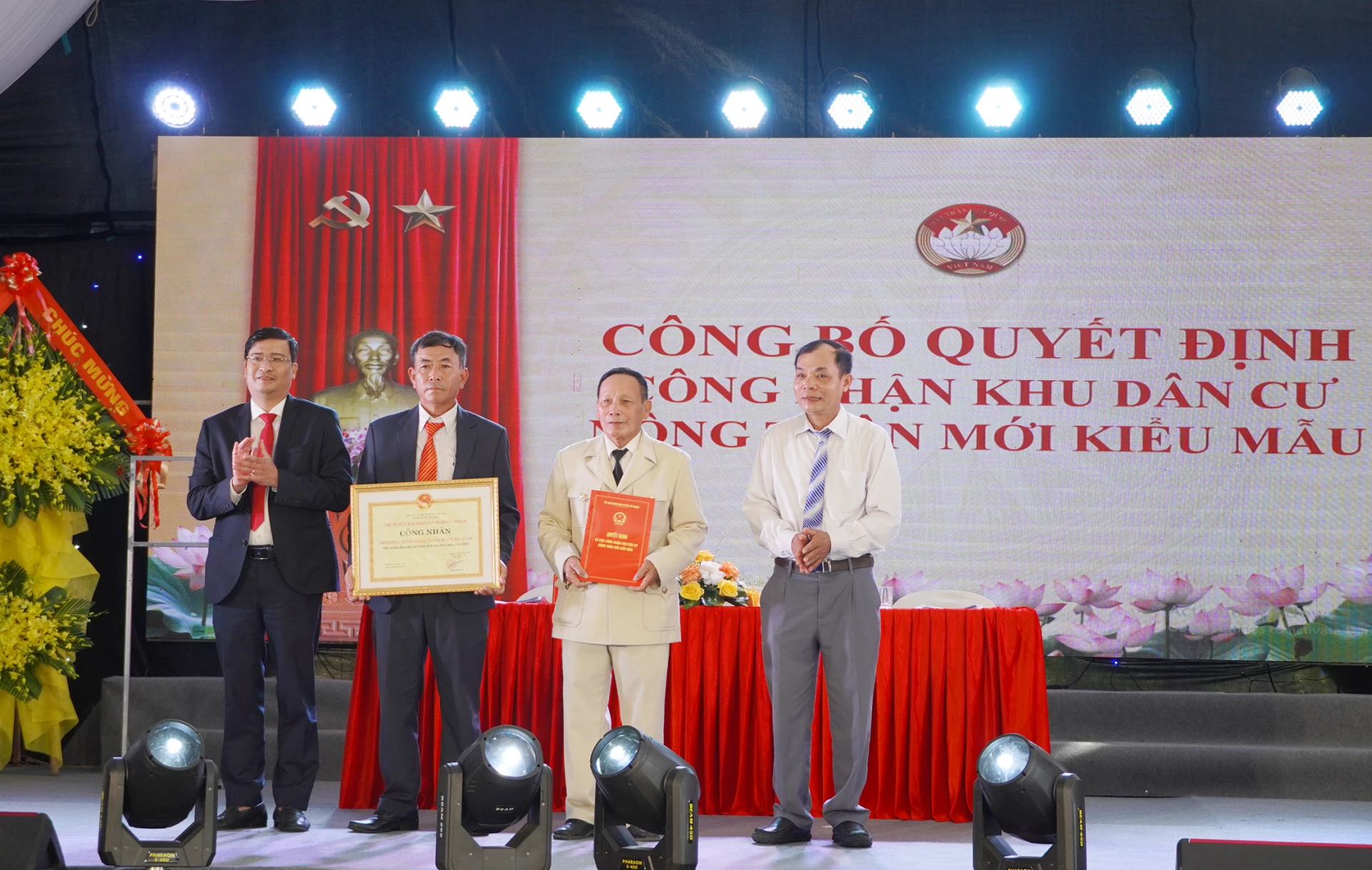 Đại diện lãnh đạo UBND xã Hoàn Lão trao quyết định công nhận Khu dân cư nông thôn mới kiểu mẫu cho thôn Phúc Tự Tây - Ảnh: L.M