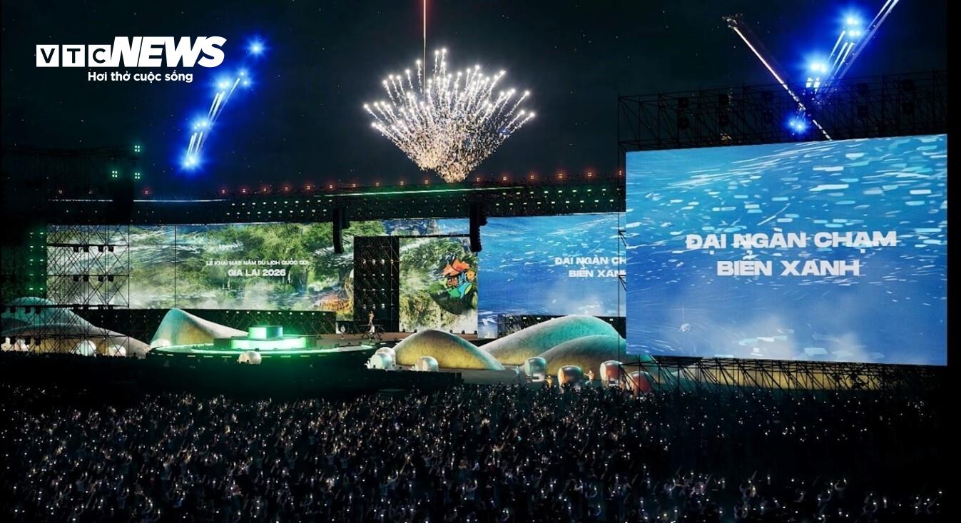Cận cảnh sân khấu đêm đại nhạc hội khai mạc Năm Du lịch quốc gia 2026, lớn nhất từ trước đến nay tại Gia Lai