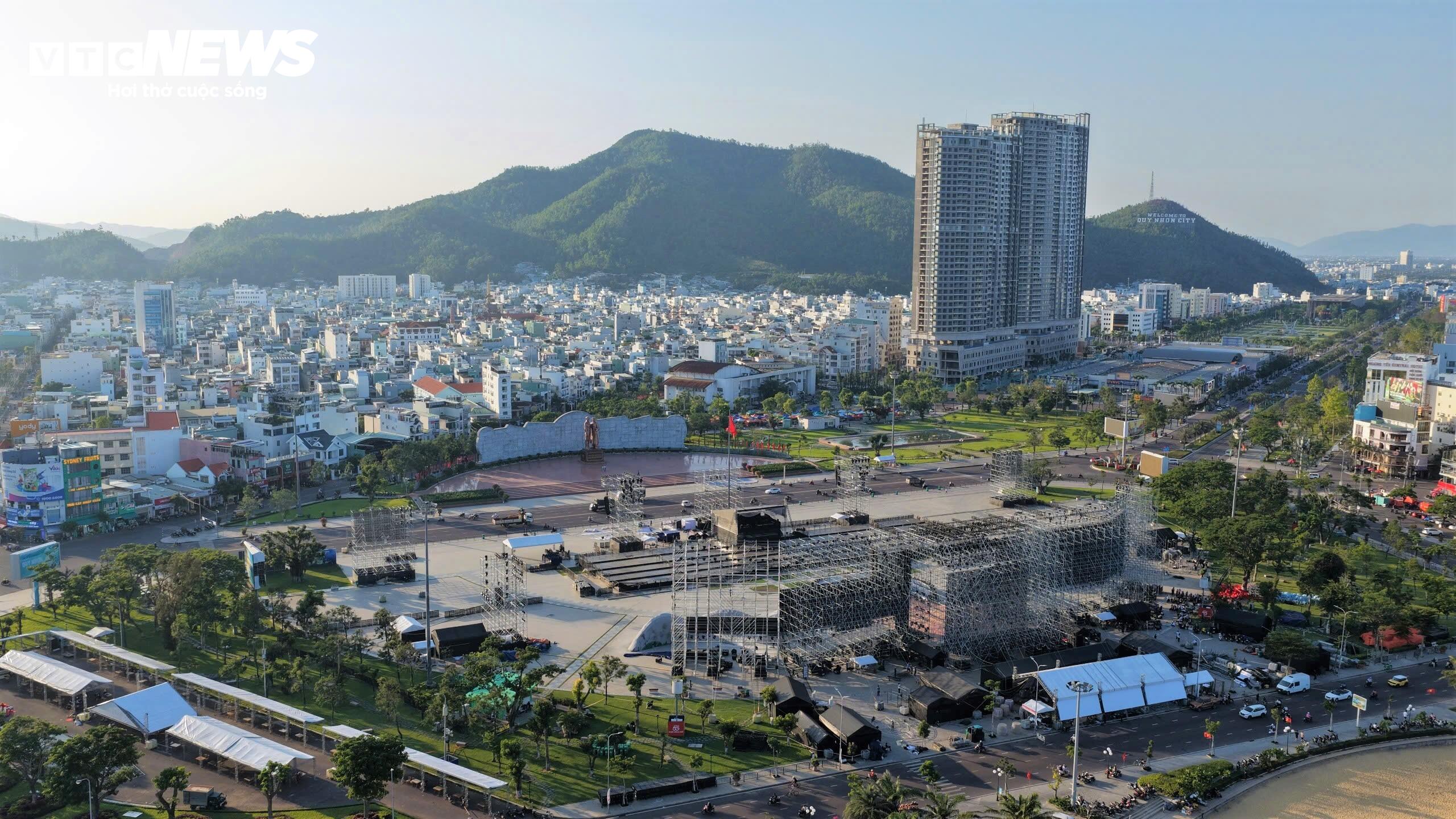 Trưa 26/3, tại Quảng trường Nguyễn Tất Thành (phường Quy Nhơn, tỉnh Gia Lai), bất chấp cái nắng gay gắt tại phố biển, hàng trăm công nhân miệt mài đẩy nhanh tiến độ dựng sân khấu cho đêm lễ khai mạc Năm Du lịch quốc gia 2026 tổ chức tại Gia Lai vào tối 28/3.