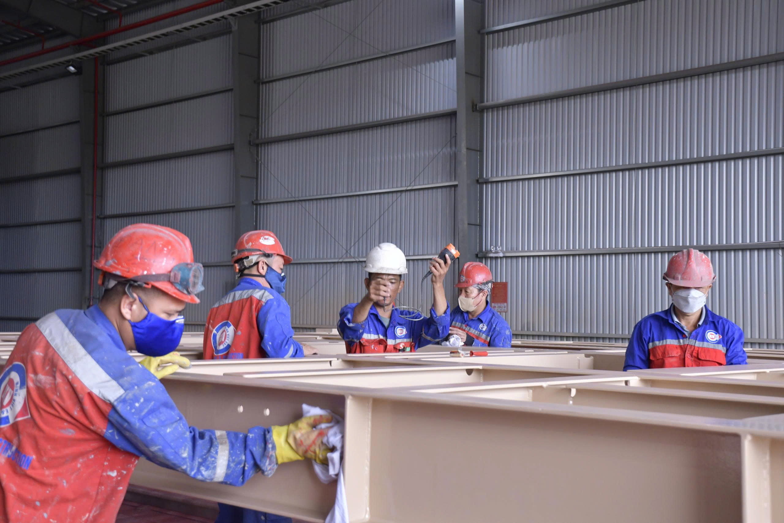 80% công nhân Công ty CP Kỹ thuật và Xây lắp Minh Việt trở lại làm việc trong ngày làm việc đầu tiên sau kỳ nghỉ tết. Ảnh: TRÚC GIANG