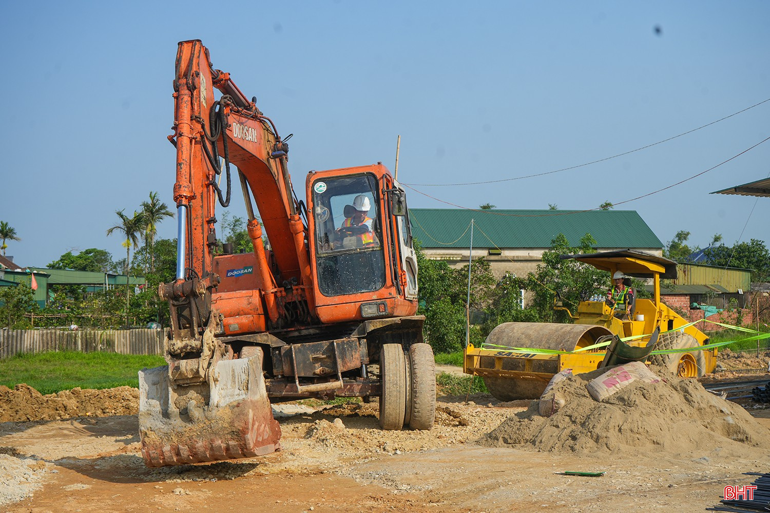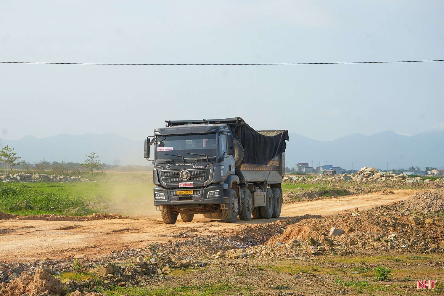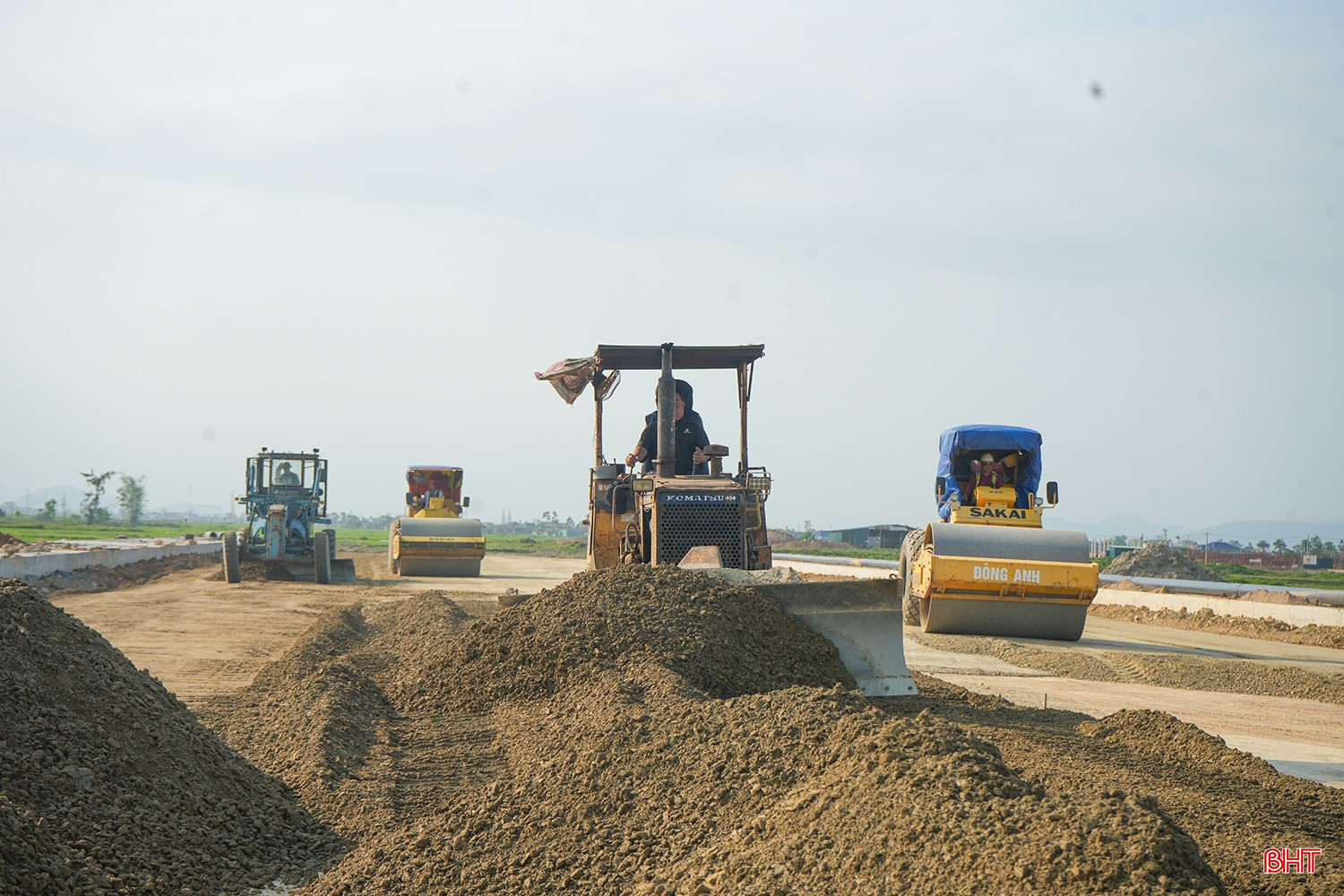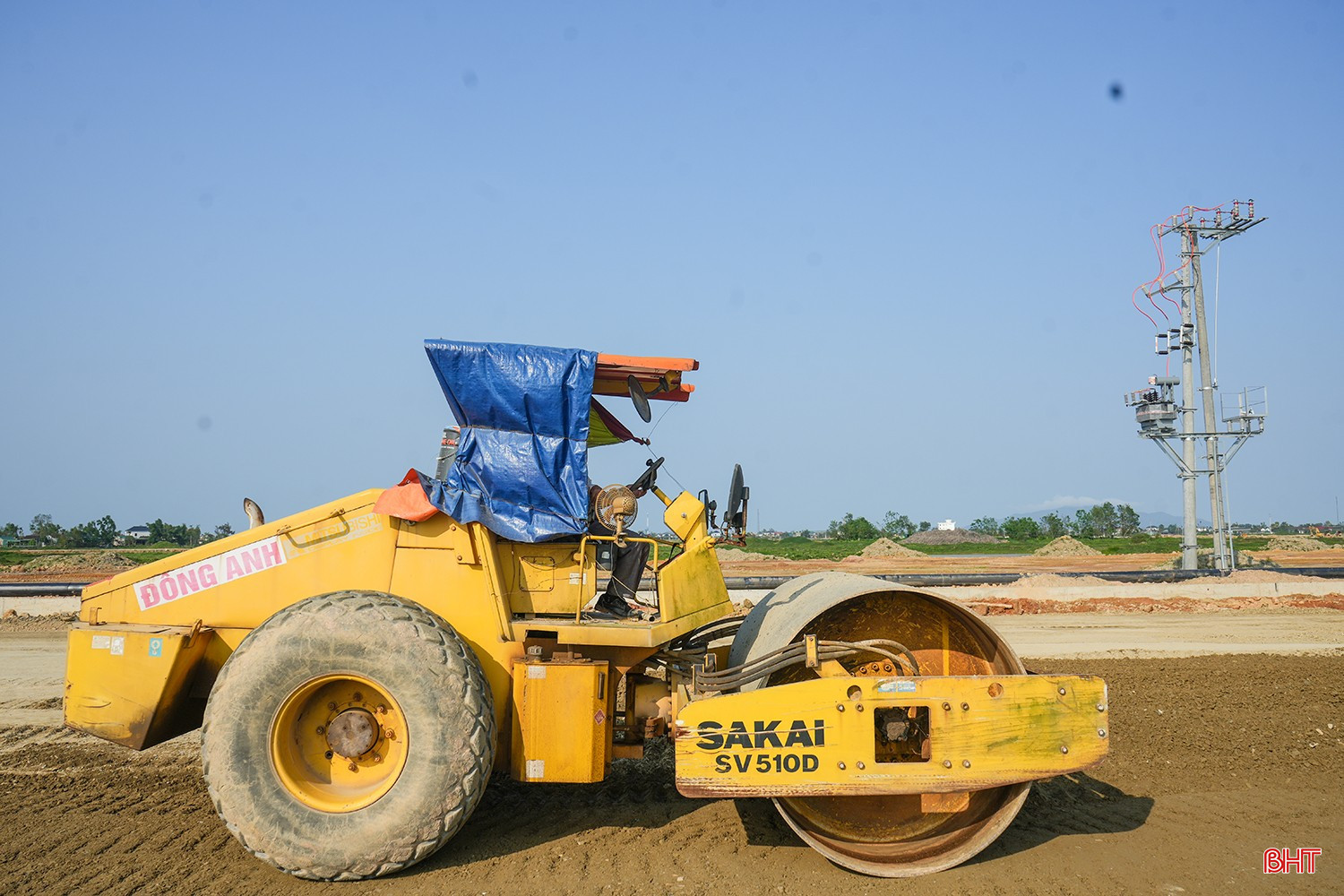 Âm thanh của máy san nền, xe vận tải và thiết bị thi công đã lan khắp công trường, tạo nên nhịp lao động hối hả, thể hiện quyết tâm tăng tốc, tranh thủ từng giờ nắng để đảm bảo tiến độ.