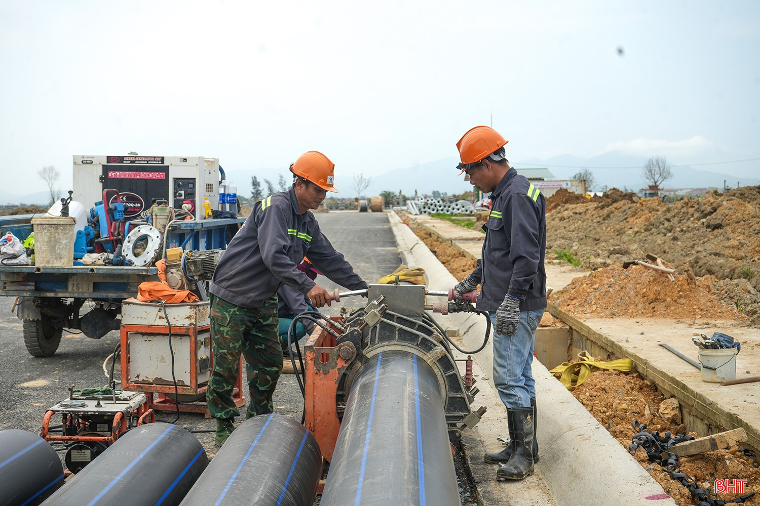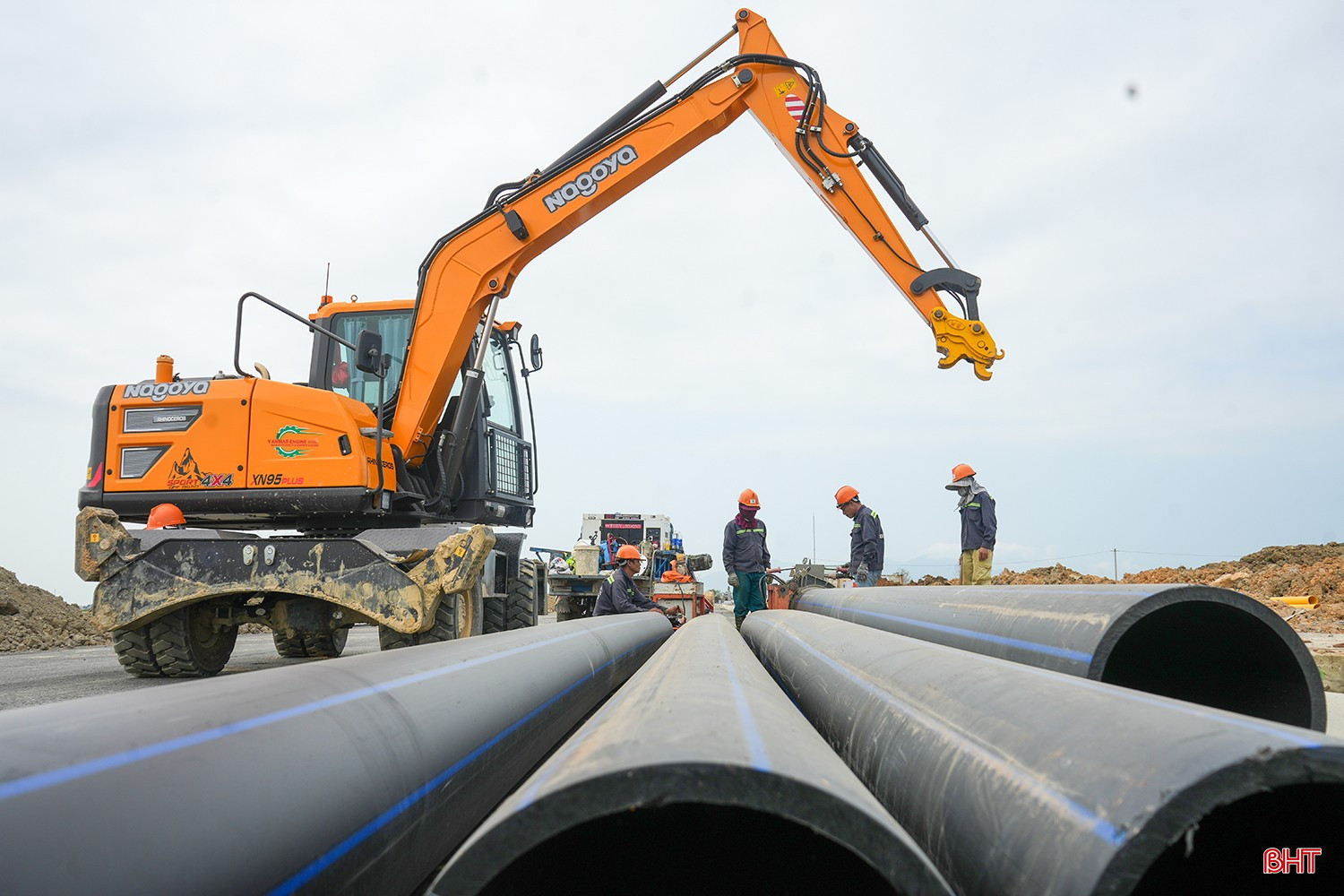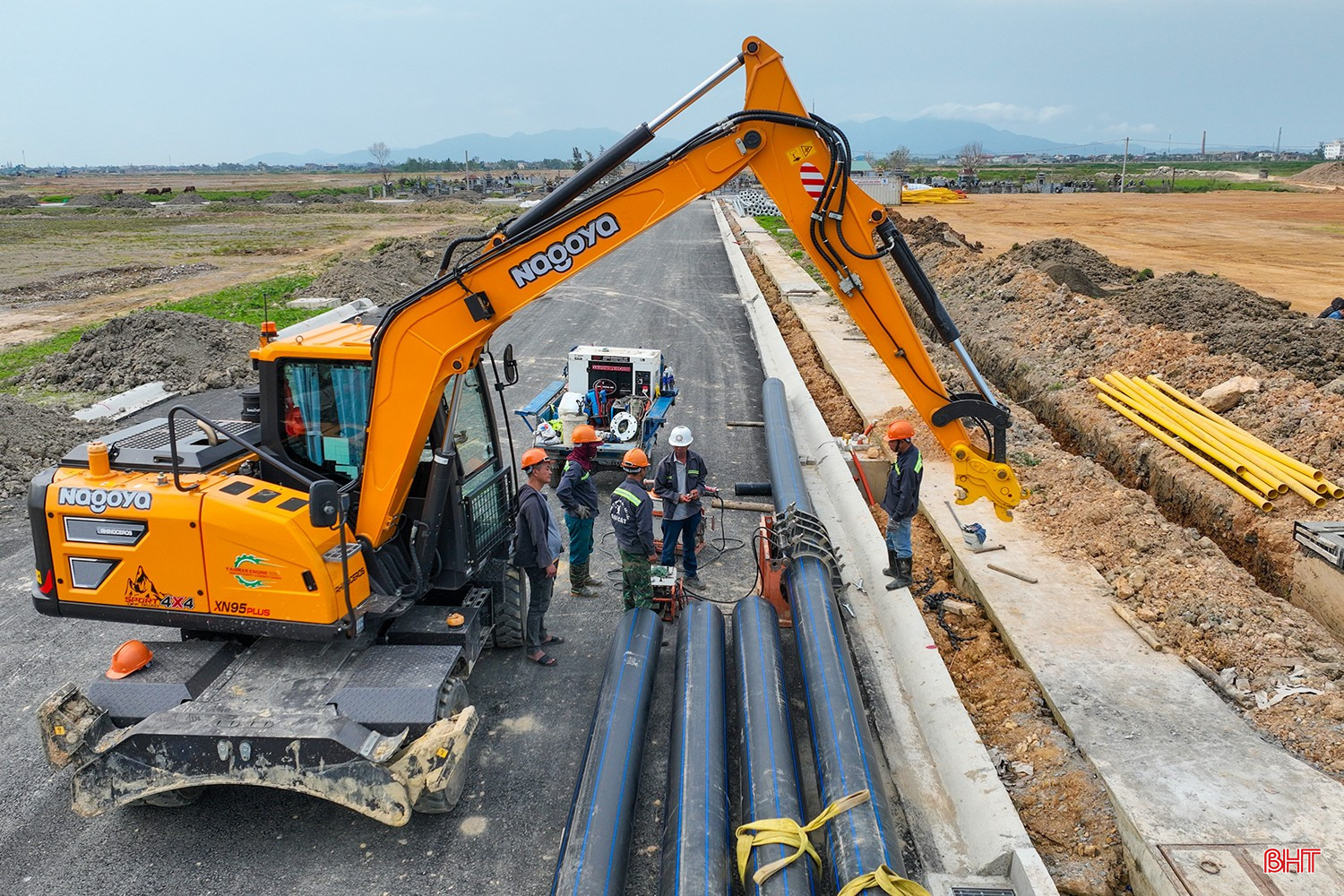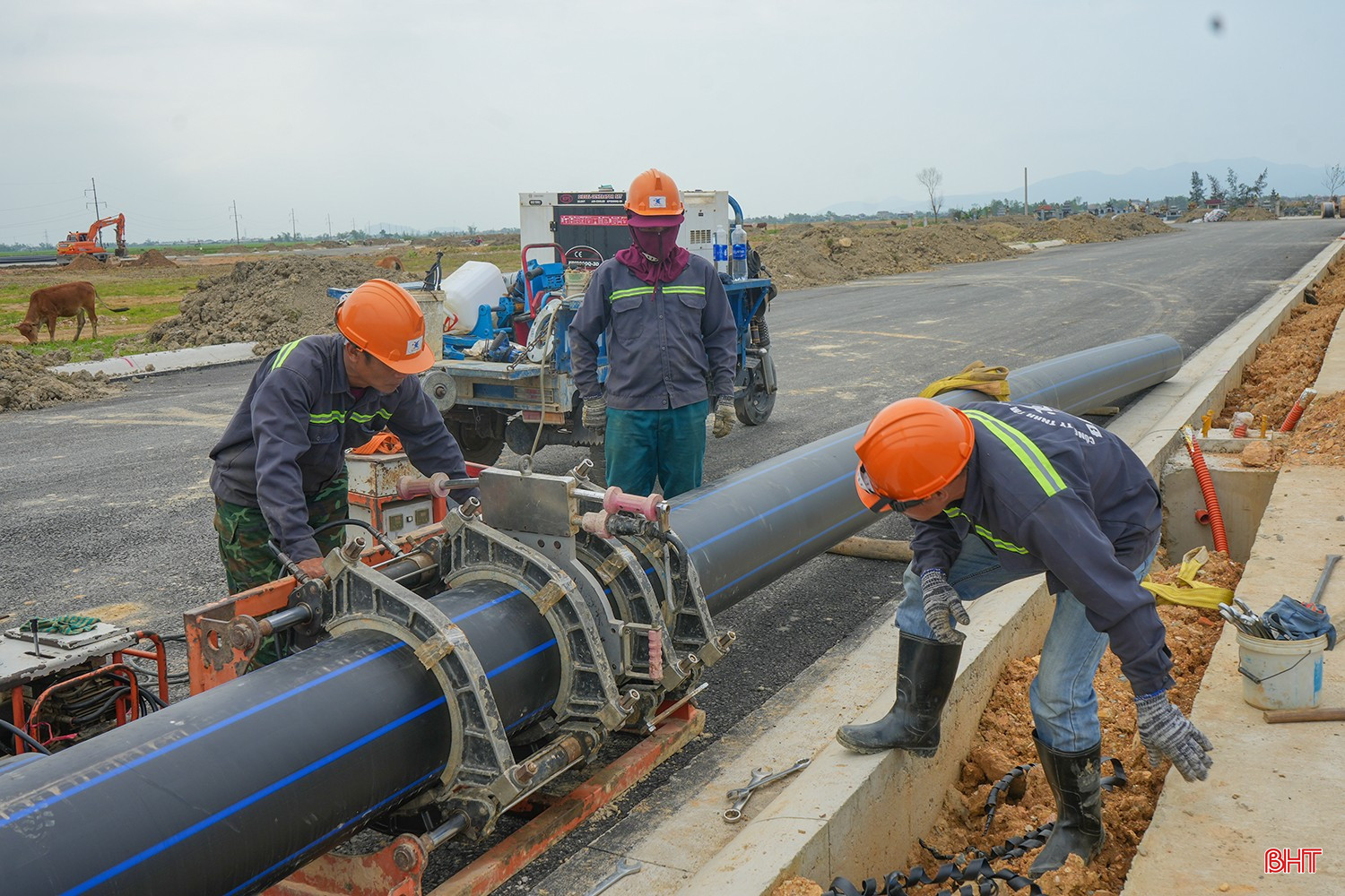 Hệ thống đường ống nước đang được các đơn vị lắp đặt để hoàn thiện phần hạ tầng cho dự án.