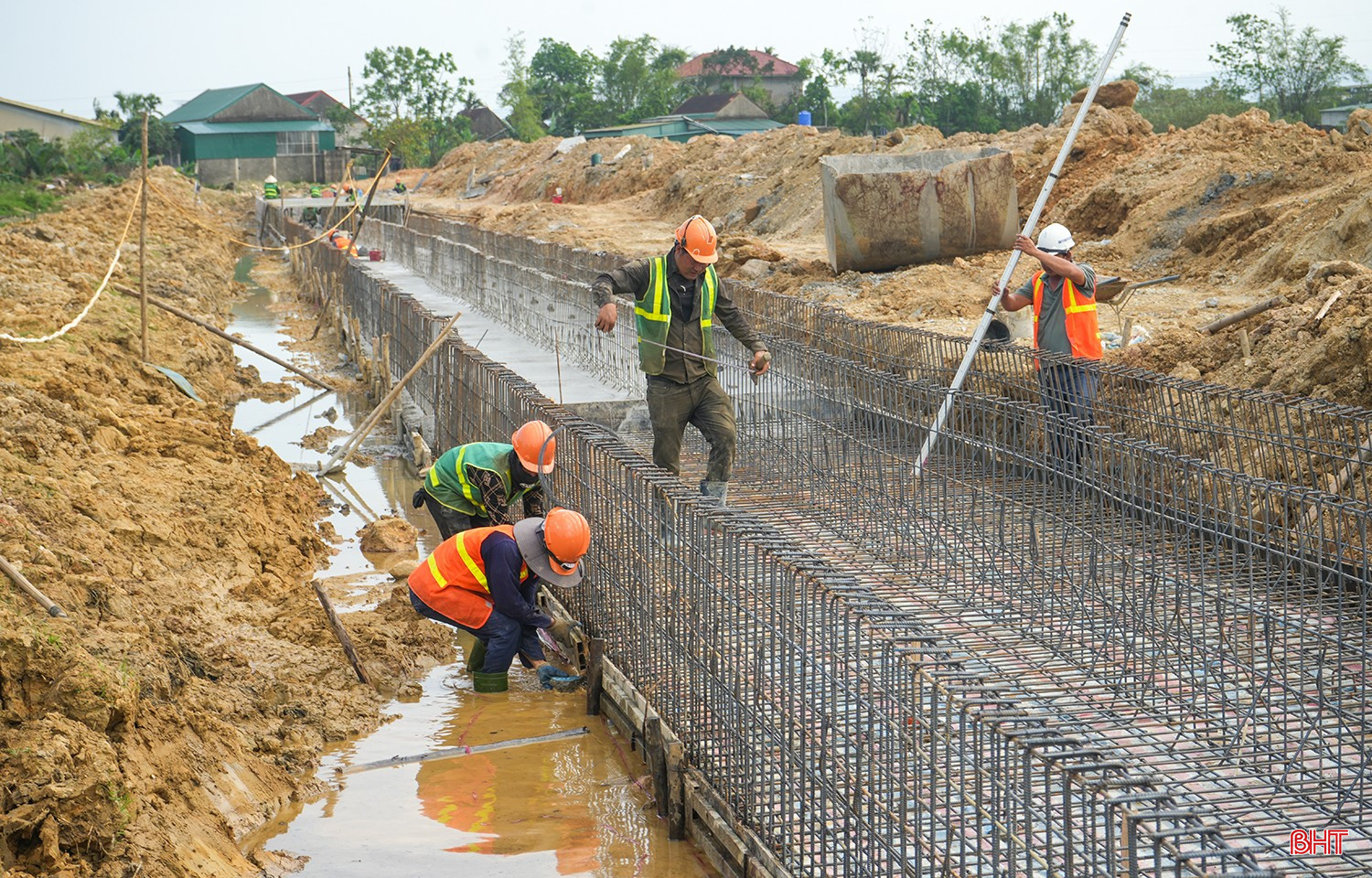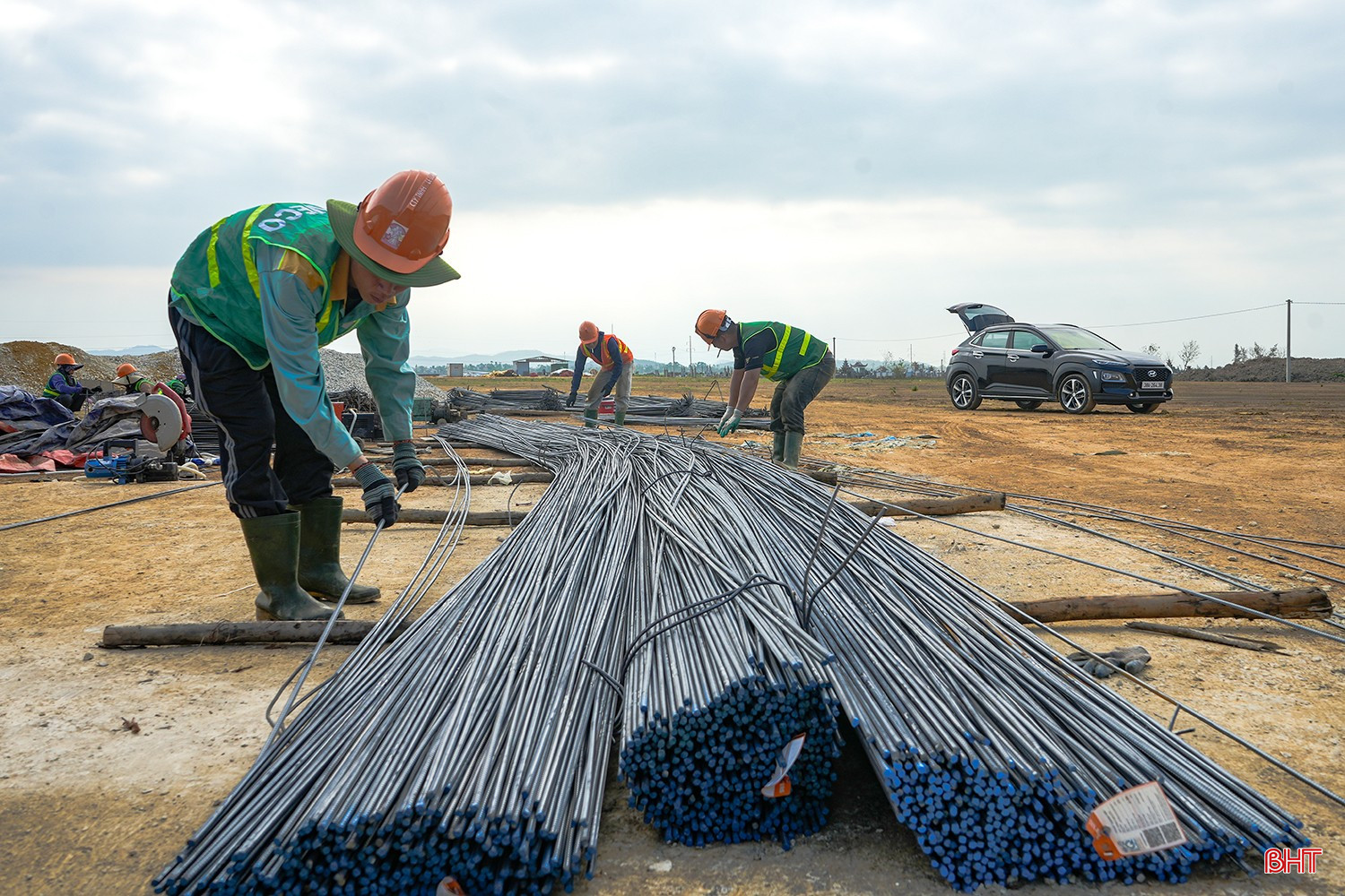 Tận dụng thời tiết nắng ráo, hàng chục công nhân, kỹ sư trên công trường Dự án đầu tư xây dựng và kinh doanh hạ tầng Khu công nghiệp Bắc Thạch Hà (dự án VSIP) đang tập trung thi công để bù khối lượng trên công trường.