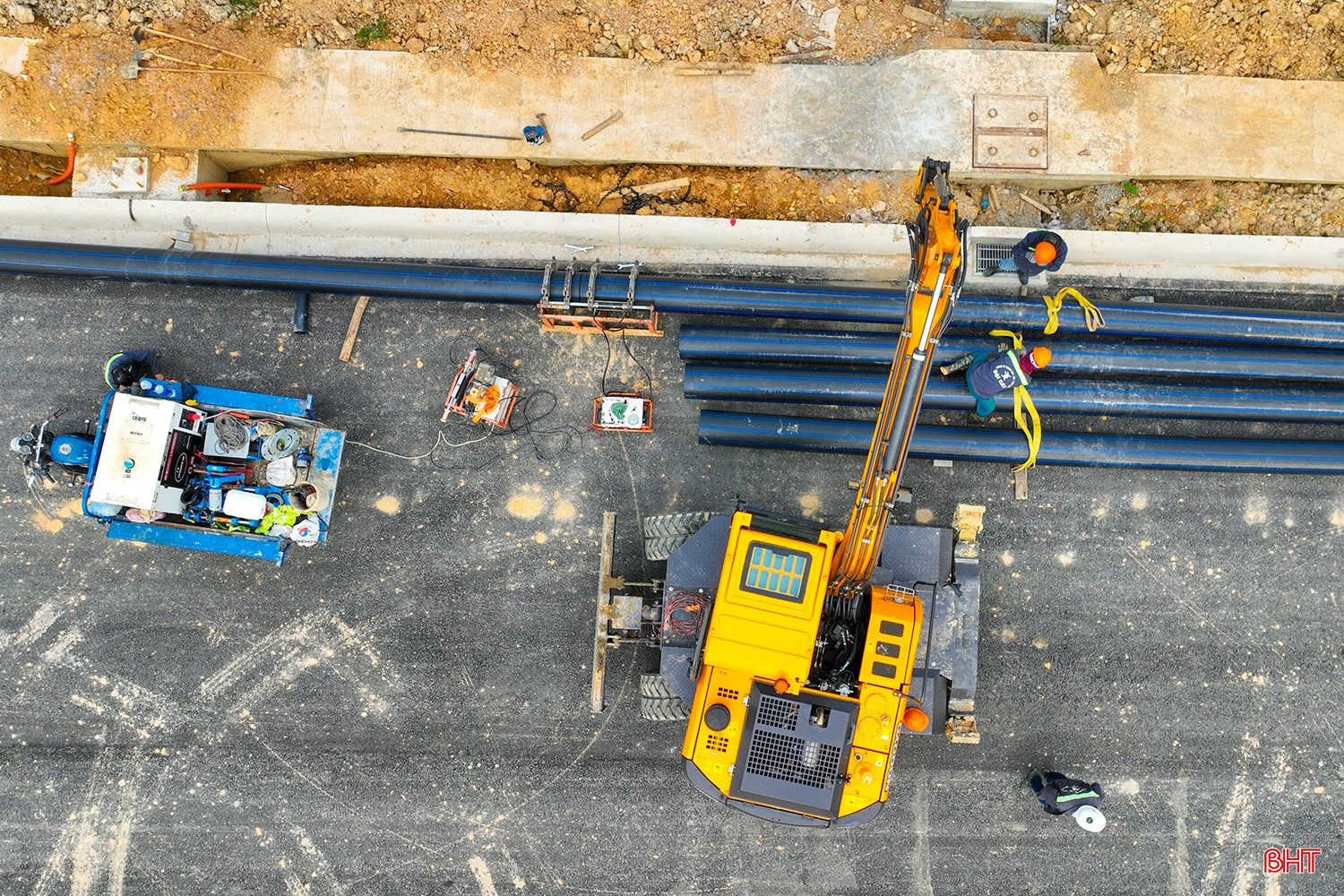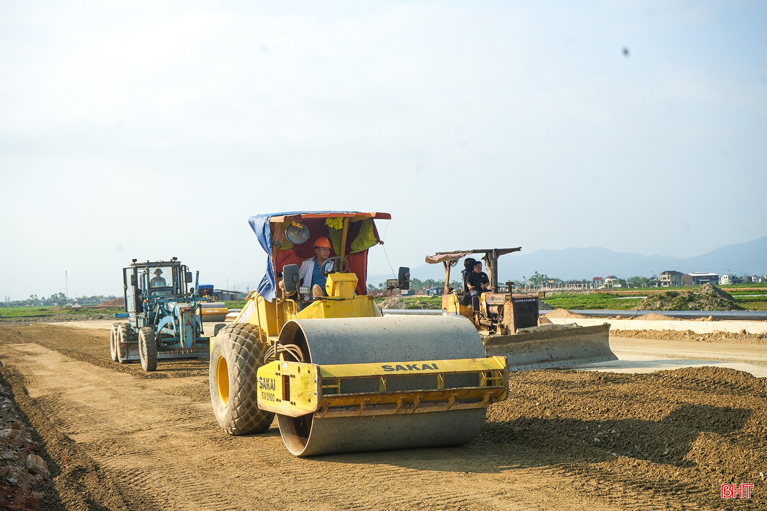 Hạng mục làm nền đường cũng đang gấp rút triển khai. Đến nay, hạng mục đường giao thông do nhà thầu phụ trách đã hoàn thành hơn 80% khối lượng, mương thoát nước đạt hơn 15% khối lượng.