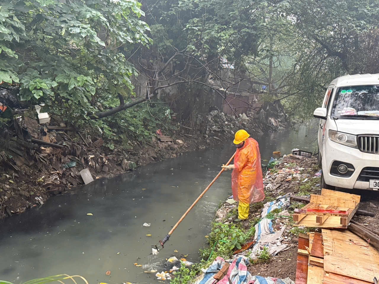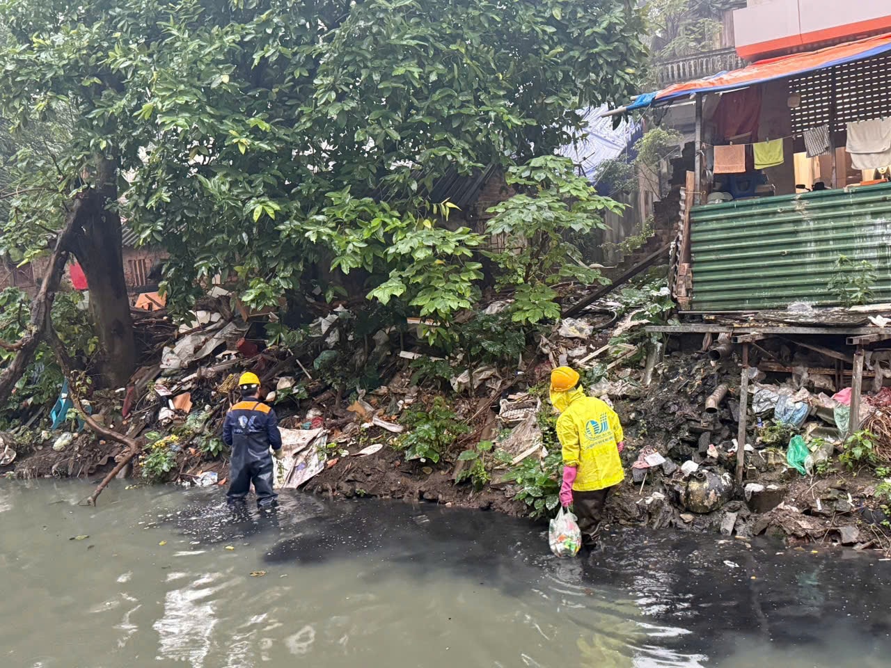 Công nhân thoát nước thu gom rác, bảo đảm vệ sinh môi trường và duy trì dòng chảy. Ảnh: Uyên Hoàng
