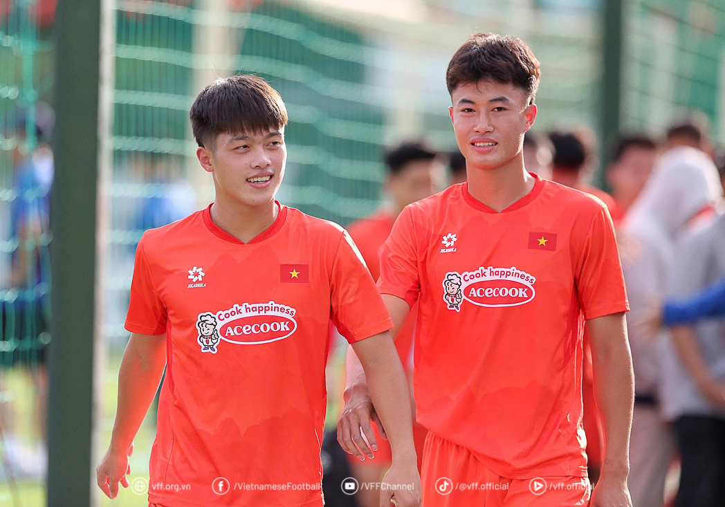 Quốc Việt (bên trái) được đôn lên từ đội U22 Việt Nam để thay thế Công Phượng.