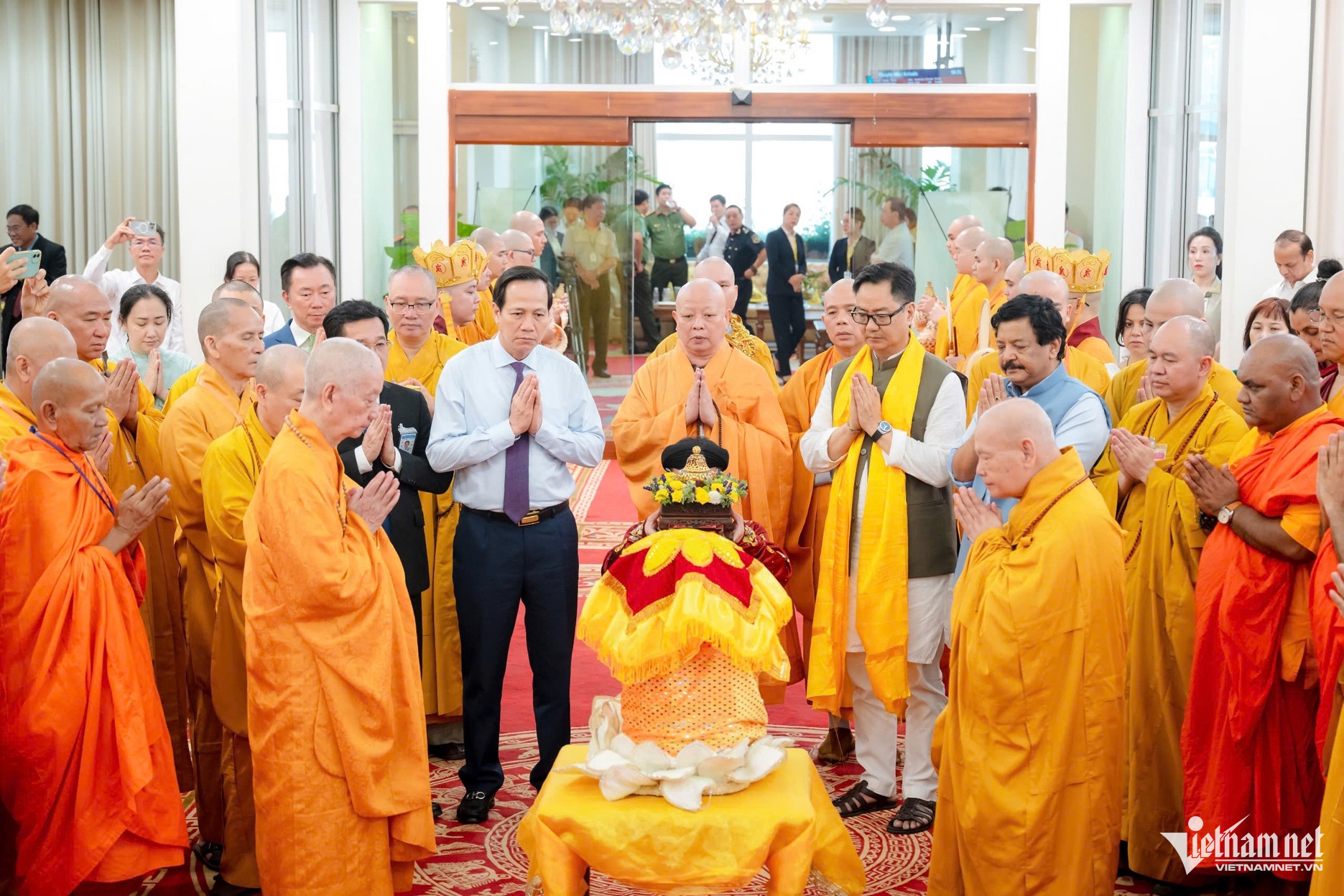 Bộ trưởng Đào Ngọc Dung và các đại biểu cung đón xá lợi Đức Phật (trong khuôn khổ Đại lễ Vesak Liên hợp quốc).