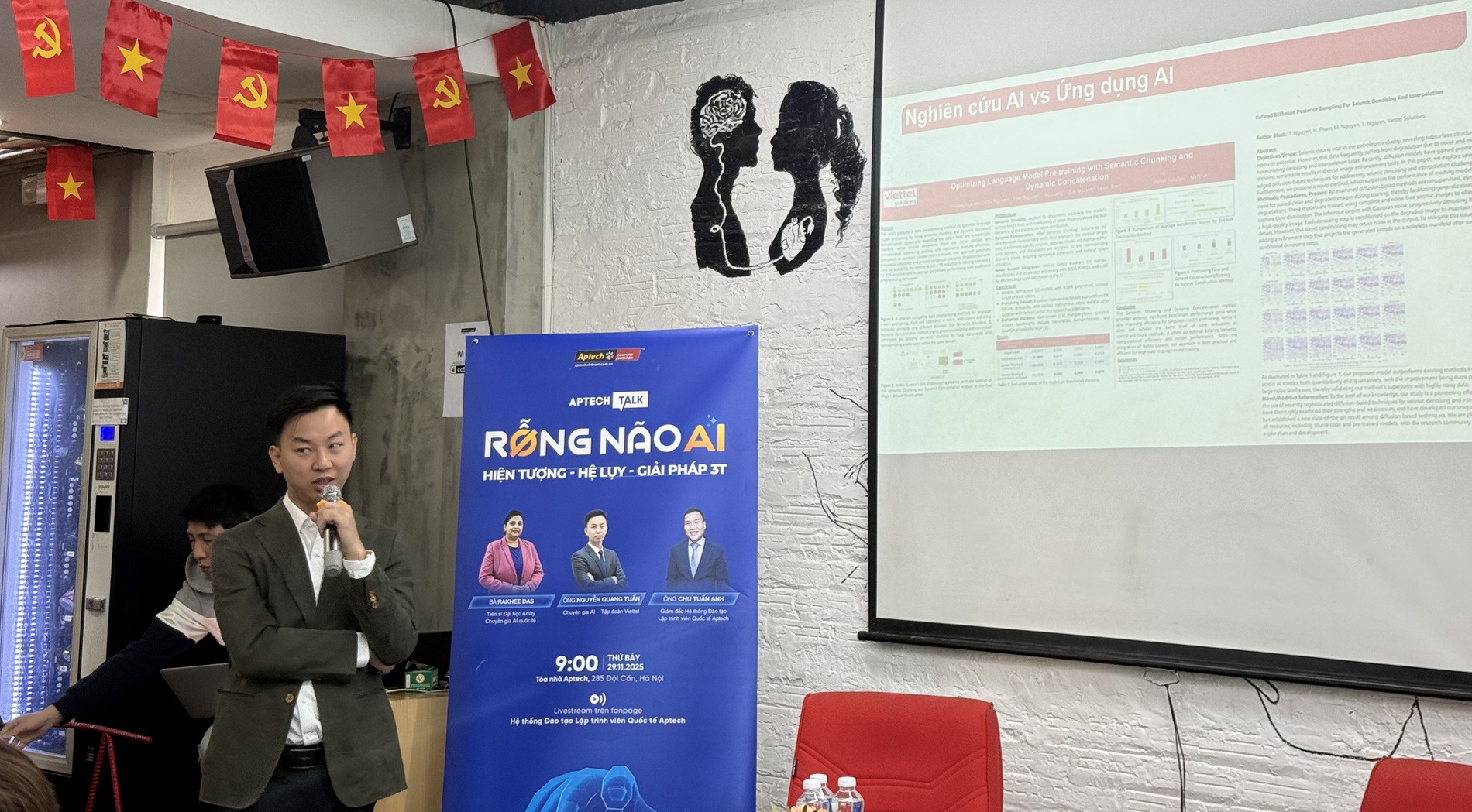 Ông Nguyễn Quang Tuấn, chuyên gia AI tập đoàn Viettel, chia sẻ kinh nghiệm sử dụng AI ngay tại doanh nghiệp. Ảnh: Aptech