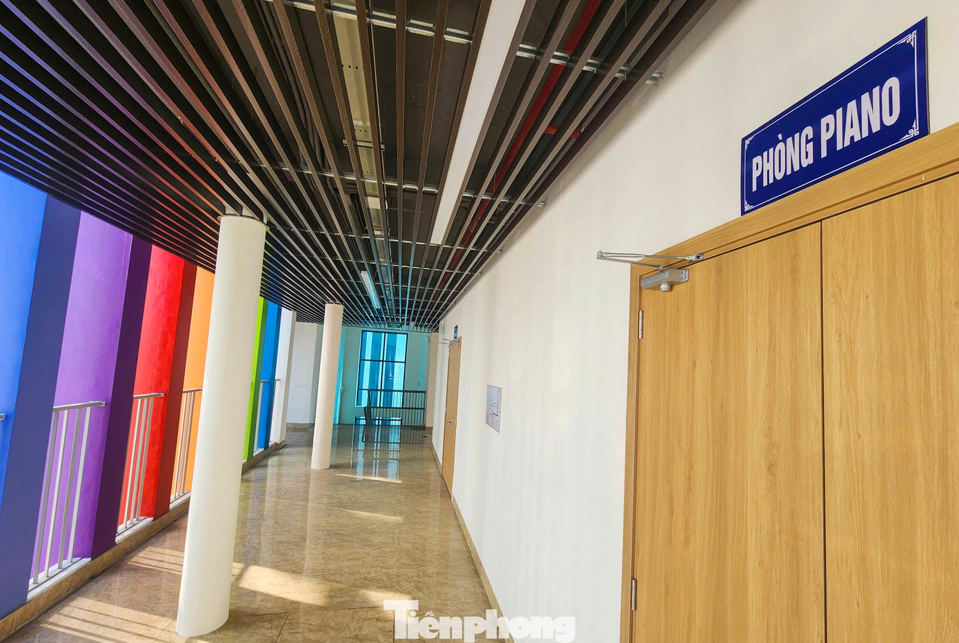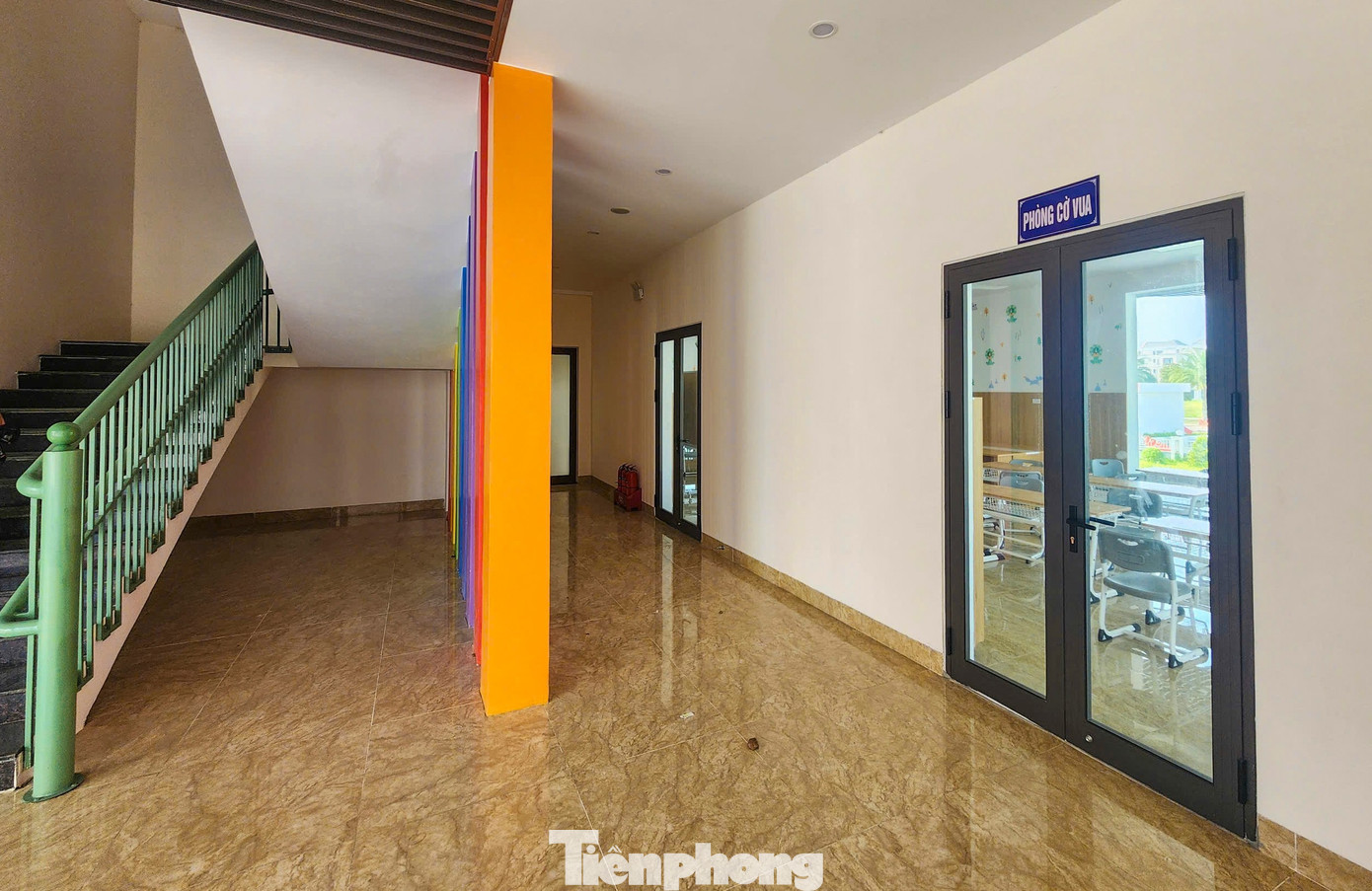 Khu vực phụ trợ gồm nhà 3 tầng, nhà thi đấu 300 chỗ ngồi và khu vận động thể chất có mái che. Thiết kế công trình đặc biệt chú trọng yếu tố an toàn, toàn bộ cầu thang, hành lang lắp khung thép, tay vịn, hộ lan chắc chắn để bảo vệ trẻ trong quá trình học tập, vui chơi.