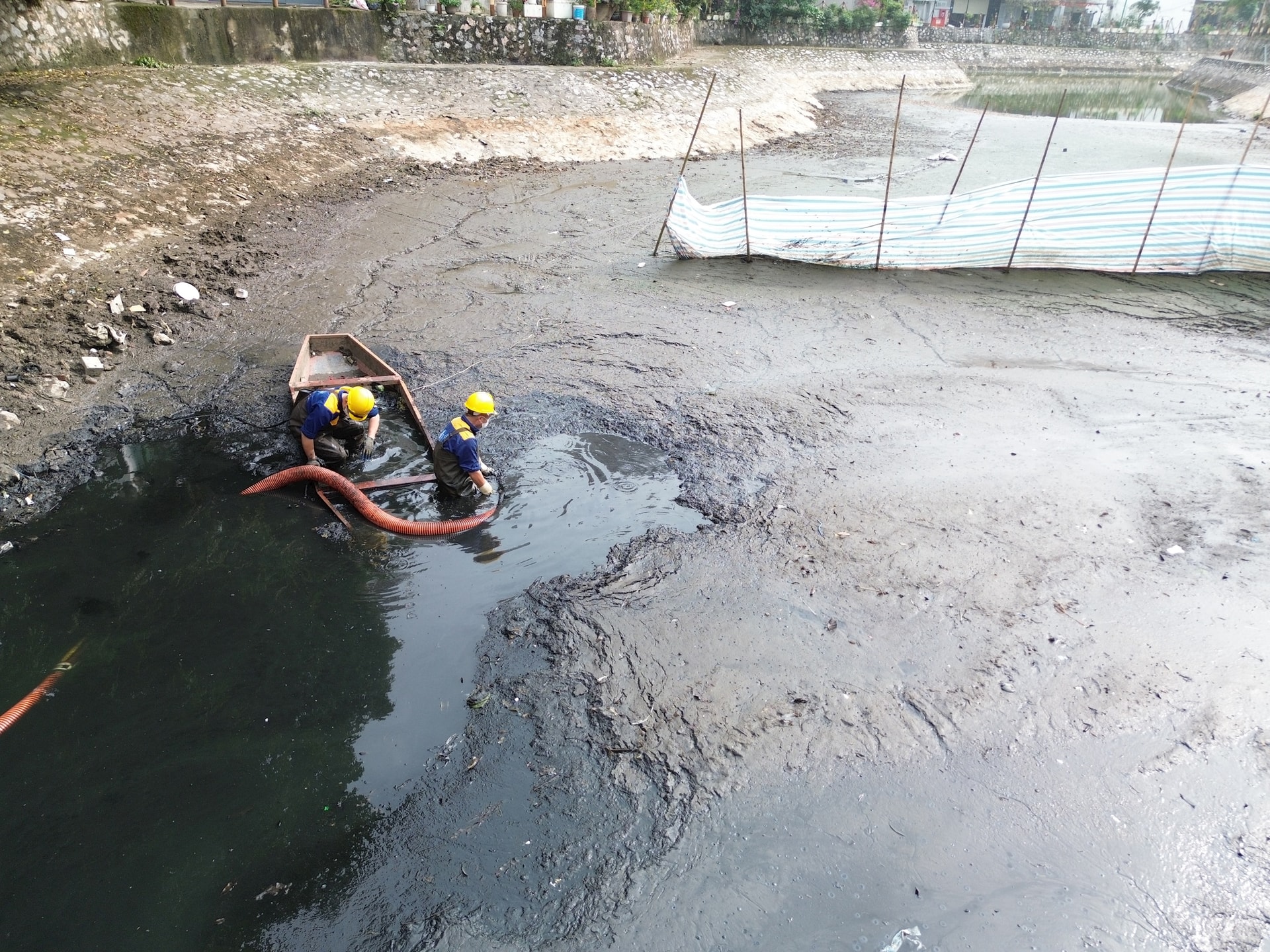 “Trung bình cao độ bùn cần nạo vét ở đây từ 1m – 1,1m, tức lại sẽ để lại khoảng 30cm lớp bùn đáy. Tổng khối lượng bùn thải cần nạo vét rơi vào khoảng trên 8.000m3. Đây là khối lượng không hề nhỏ” – anh Định nói.