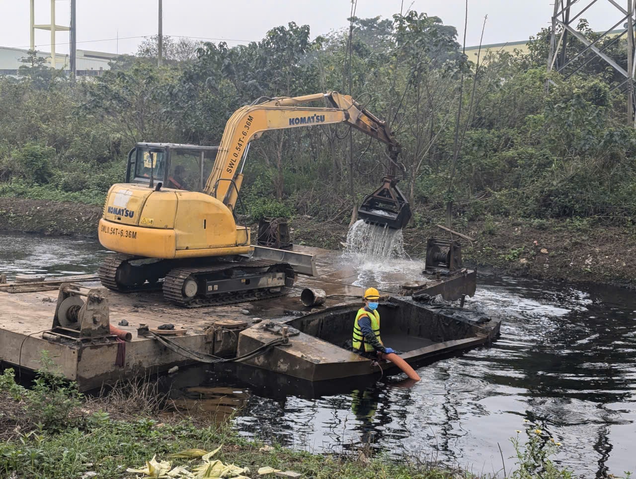 Trên thực tế, việc duy trì, nạo vét sông Cầu Bây được các cán bộ, công nhân Xí nghiệp Thi công cơ giới, Công ty TNHH MTV Thoát nước Hà Nội triển khai từ trước kỳ nghỉ Tết Nguyên đán Bính Ngọ 2026 và kéo dài suốt kỳ nghỉ Tết đến tận bây giờ.