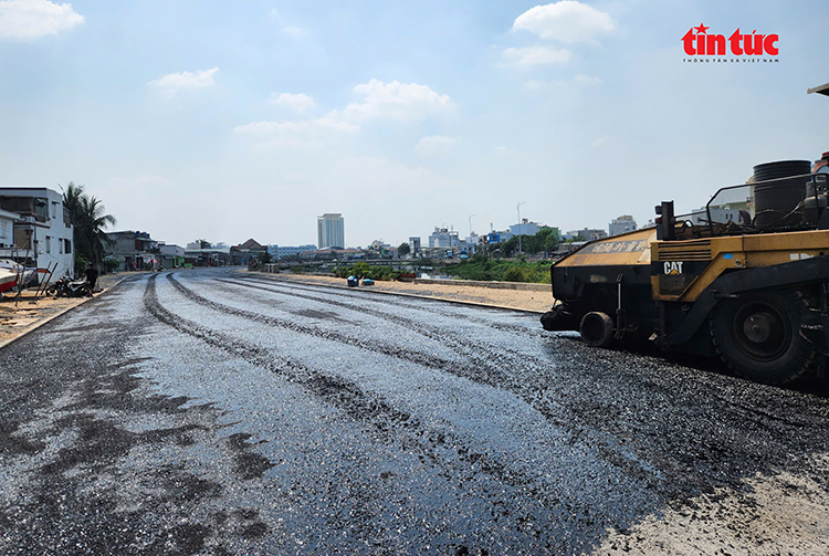 Một đoạn đường ven kênh (phường An Lạc) đang được thảm nhựa.
