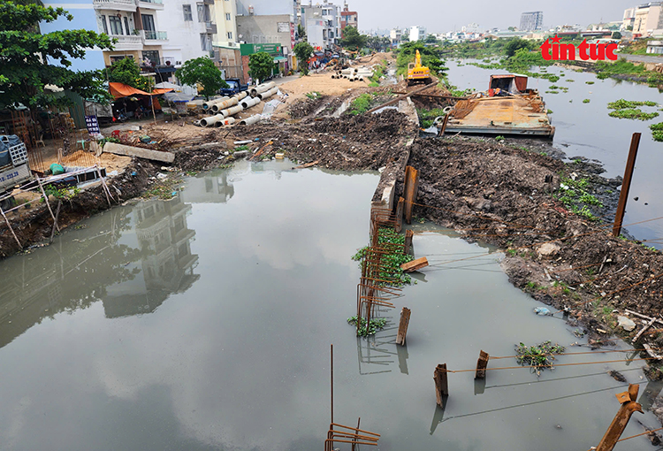 Theo ghi nhận của phóng viên Báo Tin tức và Dân tộc những ngày gần đây, dọc tuyến kênh qua các khu vực Tân Tạo, An Nhơn, Gò Vấp, An Hội Đông, An Hội Tây, Tân Sơn, Tân Bình, Bình Hưng Hòa, Bình Tân… nhiều hạng mục thi công còn dang dở. Một số đoạn đường ven kênh chưa hoàn thiện, bùn đất ngổn ngang, trong khi nhiều vị trí không có công nhân làm việc. Máy móc, thiết bị rải rác dọc tuyến, nhiều cần cẩu trên sà lan tạm ngừng hoạt động.