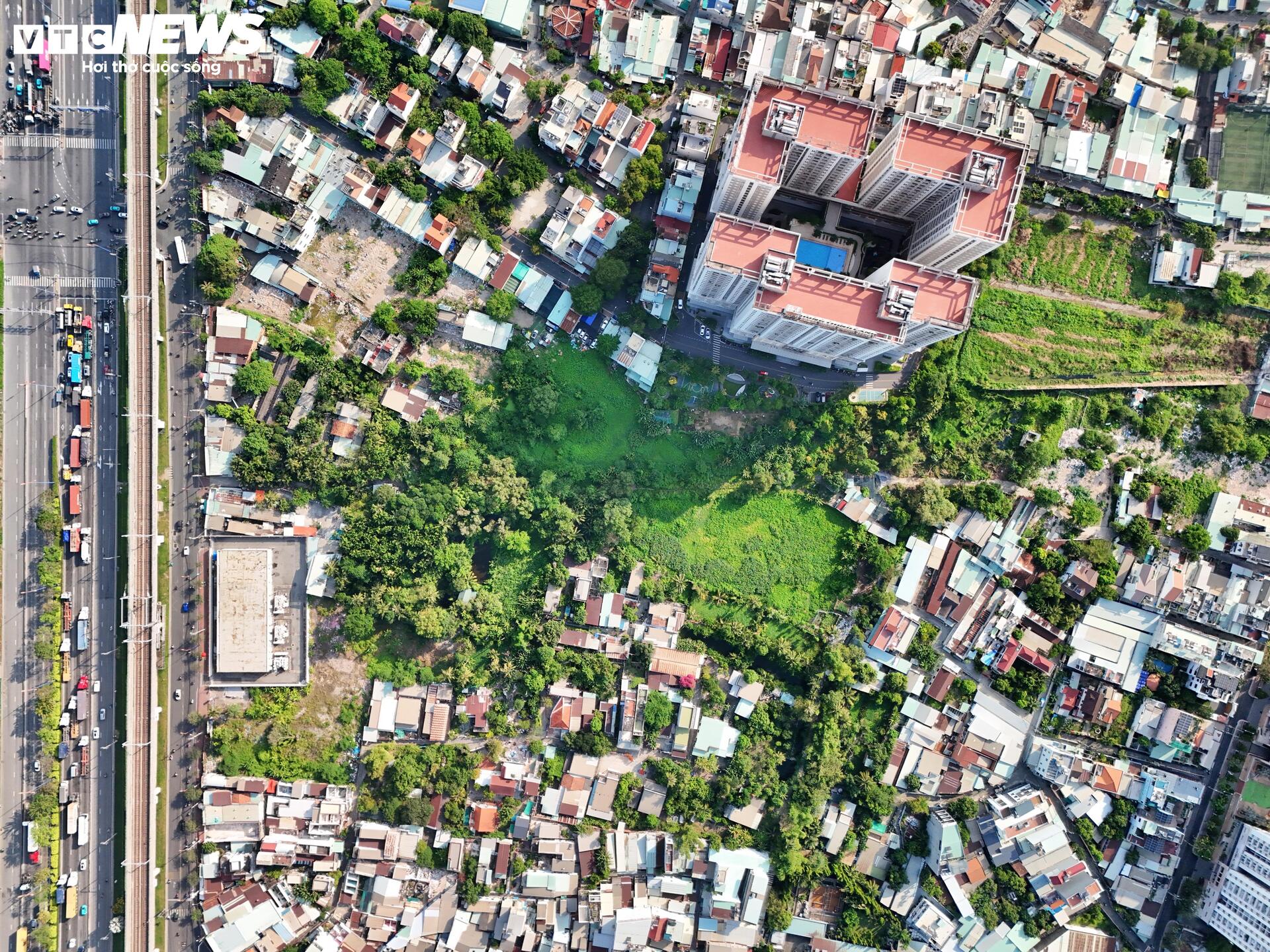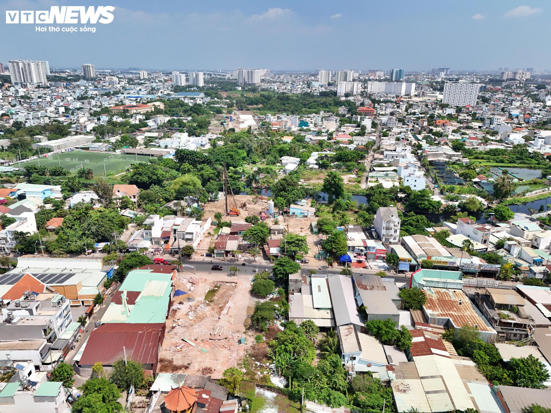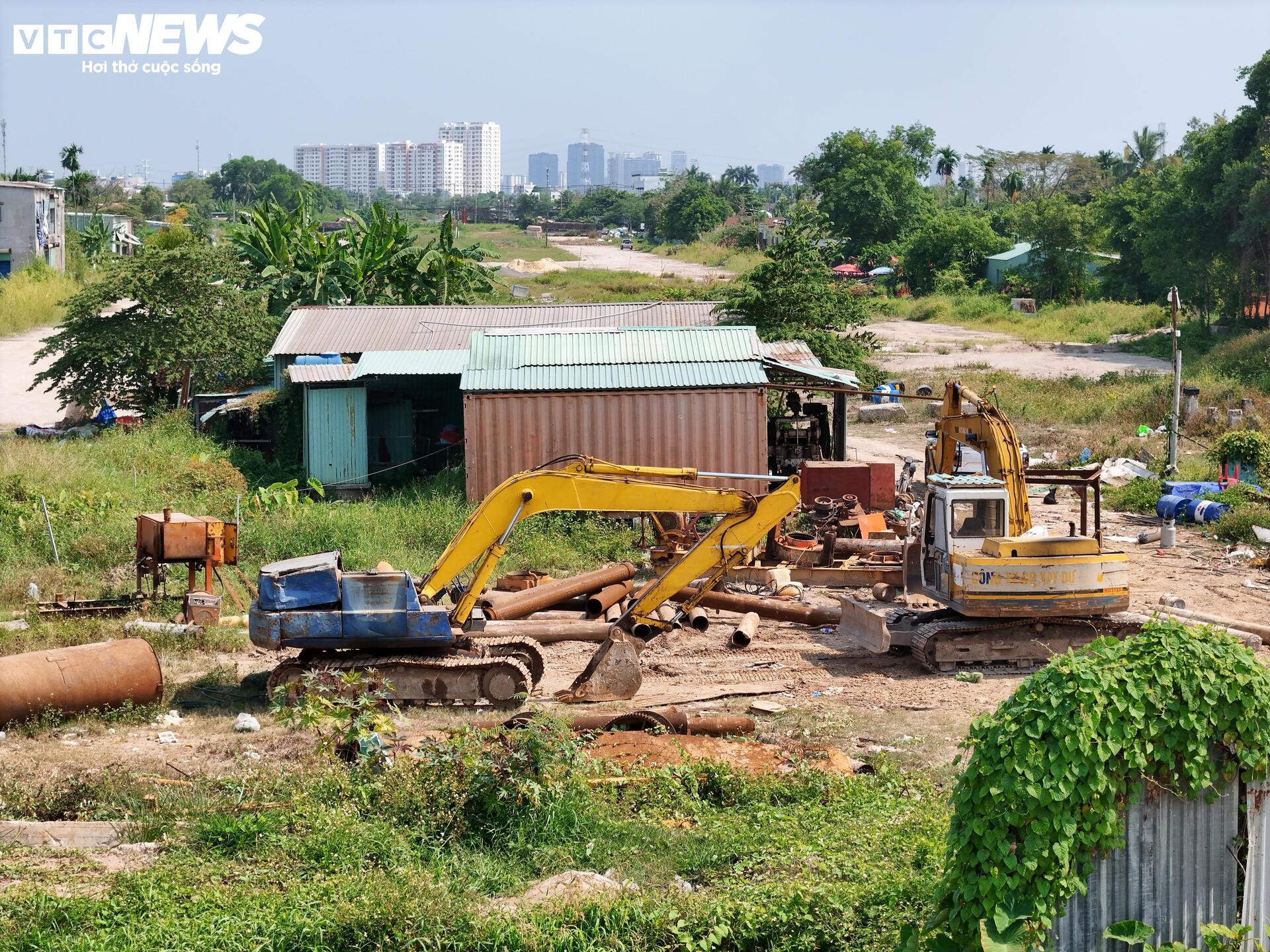 Theo ghi nhận, khu vực nút giao với đường Phạm Văn Đồng (địa bàn TP Thủ Đức cũ) vẫn còn hàng chục hộ dân chưa di dời, khiến công tác giải phóng mặt bằng chưa thể hoàn tất.