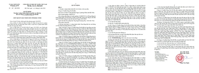 Quyết định xử phạt Công ty Cổ phần Sông Cầu Hà Bắc.