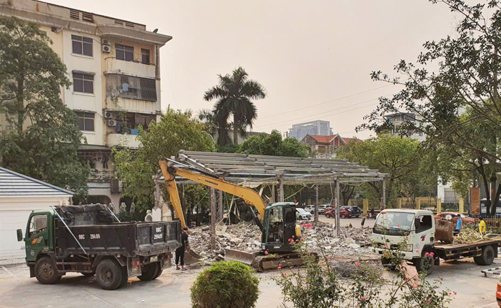 Công ty cổ phần Tập đoàn Quang Minh tháo dỡ công trình tạm.