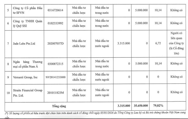 Hai tổ chức Vemanti Group, Inc và Straits Financial Group Pte. Ltd không được phân phối cổ phiếu trong đợt chào bán nhưng vẫn xuất hiện trong danh sách nhà đầu tư chiến lược dự kiến tham gia.