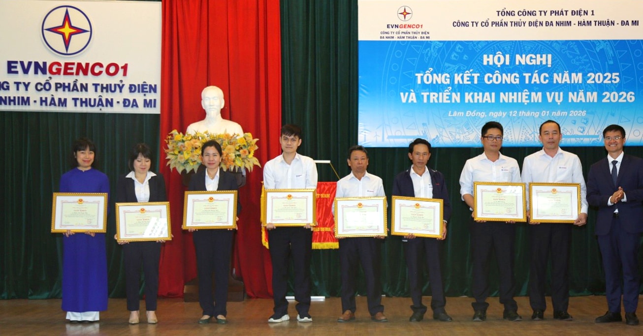 Nhân dịp Hội nghị tổng kết, Lãnh đạo EVNGENCO1 đã trao giấy khen cho các tập thể và cá nhân đã đạt thành tích cao trong năm 2025.