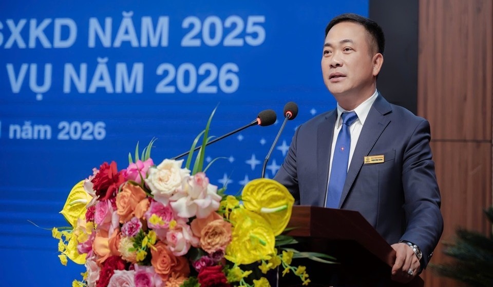Ông Phạm Công Thành, Giám đốc Công ty Điện lực Nghệ An phát biểu tại Hội nghị Tổng kết công tác sản xuất kinh doanh năm 2025, triển khai nhiệm vụ năm 2026. Ảnh: Điện lực Nghệ An