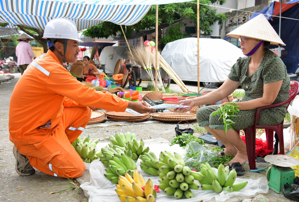 Nhân viên Công ty Điện lực Ninh Bình phát tờ rơi hướng dẫn khách hàng các phương thức thanh toán tiền điện mới