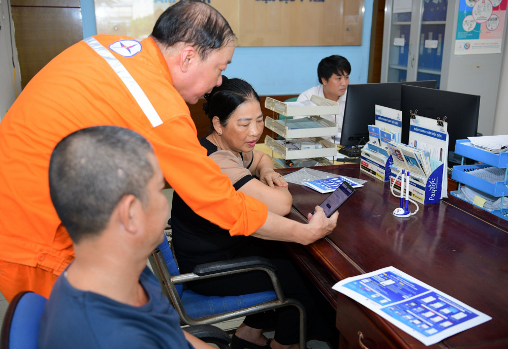 Đội quản lý điện Khu vực Ý Yên hướng dẫn cho khách hàng cài đặt ứng dụng để theo dõi chỉ số điện năng và thanh toán tiền điện trực tuyến
