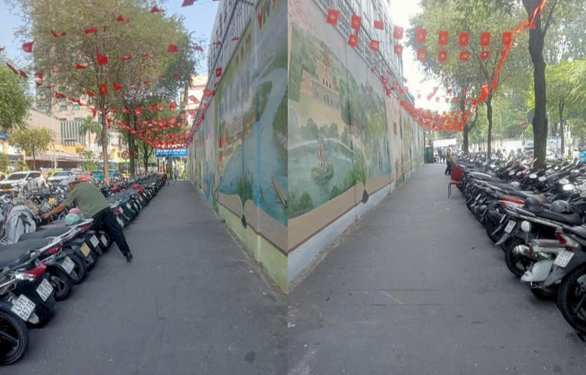 Bãi giữ phía đường Công xã Paris (đoạn từ đường Lê Duẩn đến đường Nguyễn Văn Bình, vách tường cạnh UBND phường Sài Gòn). Ảnh: Đường sách TP.HCM