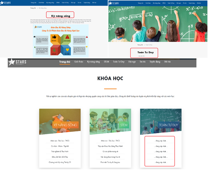 Về mảng Toán tư duy, website đơn vị hiển thị trạng thái "đang cập nhật".