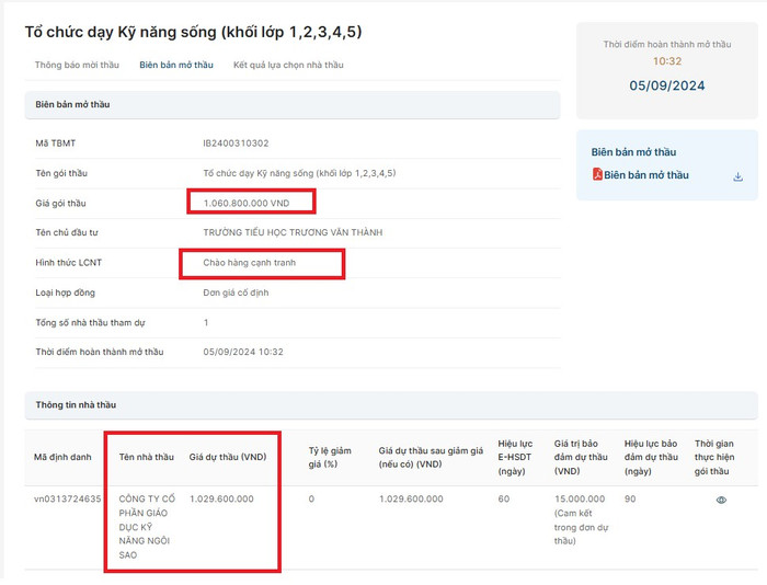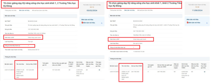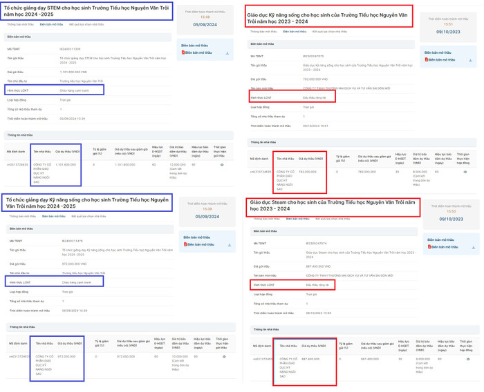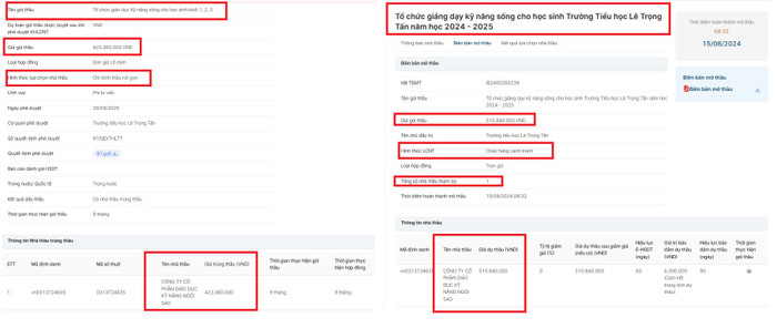 Hai gói thầu nêu trên đều được chào hàng cạnh tranh, nhưng cũng chỉ có duy nhất Công ty Cổ phần Giáo dục Kỹ năng Ngôi Sao tham gia dự thầu và trúng thầu.