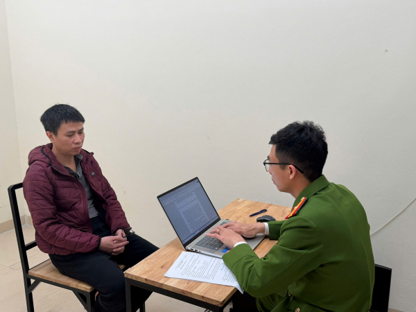 Đối tượng Phạm Vũ Khiêm tại cơ quan Công an.