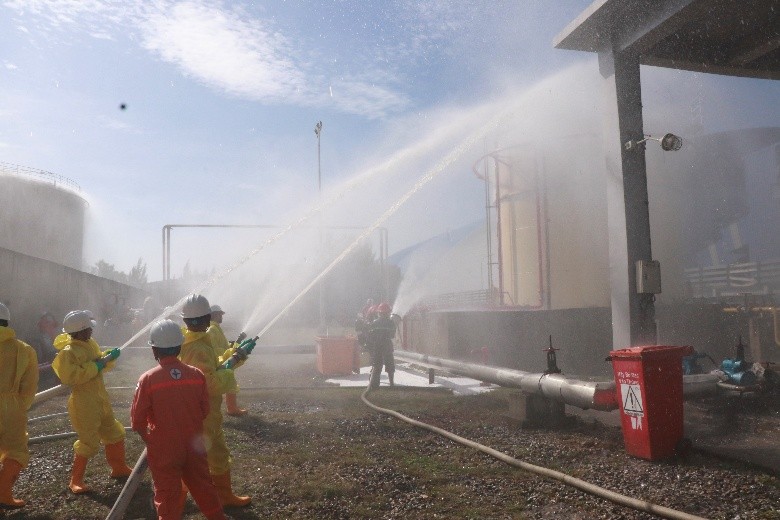 Quy trình xử lý được triển khai chi tiết theo đúng phương án các bước từ cô lập nguồn dầu, cứu người bị nạn bằng bình dưỡng khí, cho đến việc kích hoạt hệ thống chữa cháy Foam tự động.