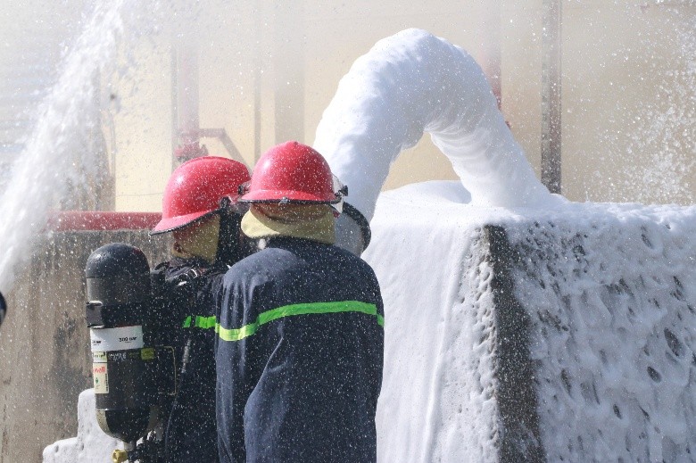 Sử dụng chất chữa cháy Foam tạo màn bao phủ bề mặt ngăn cháy dầu DO