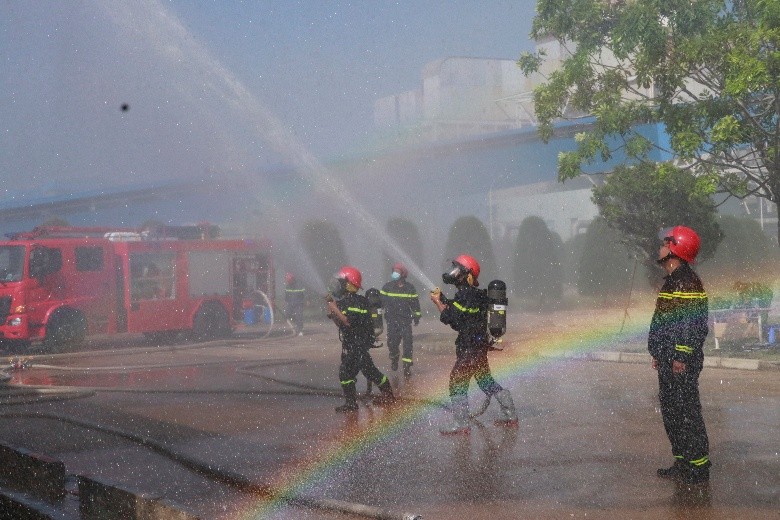 Ông Lê Việt Đức, Phó Giám đốc Công ty, nhấn mạnh: "Công tác PCCC là tuyến phòng thủ quan trọng bảo vệ sự an toàn, ổn định của toàn bộ hoạt động sản xuất. Chúng tôi luôn kiên trì đầu tư thiết bị hiện đại, đồng thời tăng cường đào tạo để mỗi CBCNV đều hiểu rõ vai trò, trách nhiệm của mình trong xử lý sự cố. Nội dung diễn tập hôm nay được xây dựng bám sát điều kiện thực tế vận hành, giúp lực lượng tại chỗ chủ động hơn và phản ứng chuẩn xác hơn khi có tình huống khẩn cấp".
