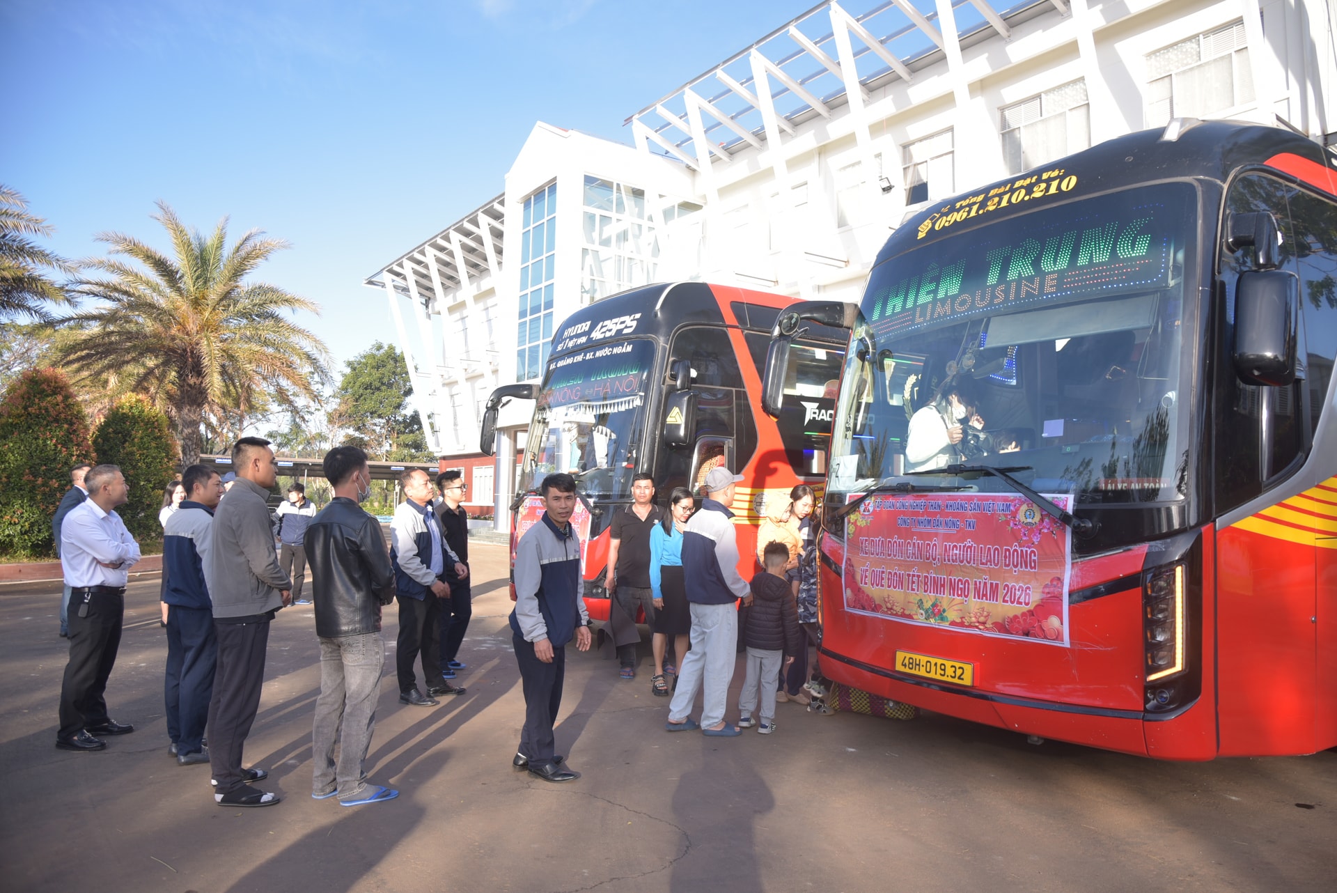 Công ty Nhôm Đắk Nông - TKV bố trí 8 chuyến xe miễn phí đưa đón 261 lượt người lao động về quê ăn Tết