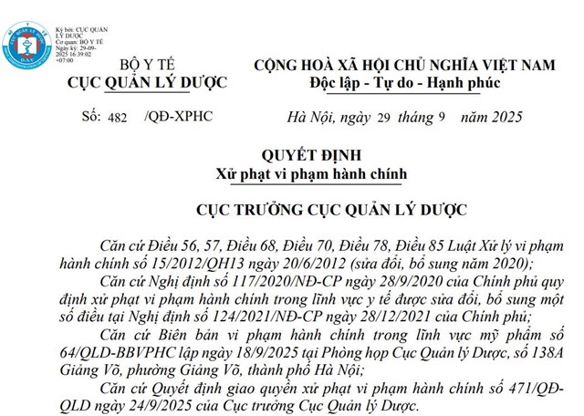 Với các vi phạm trên, Cục Quản lý Dược đã xử phạt Công ty TNHH Phát Anh Minh tổng số tiền 145 triệu đồng. Trong đó, hành vi kê khai sai nội dung bị xử phạt 35 triệu đồng; hành vi thay đổi nội dung công bố không phép bị phạt 35 triệu đồng; và hành vi không có hồ sơ PIF cho 25 sản phẩm bị phạt 75 triệu đồng.