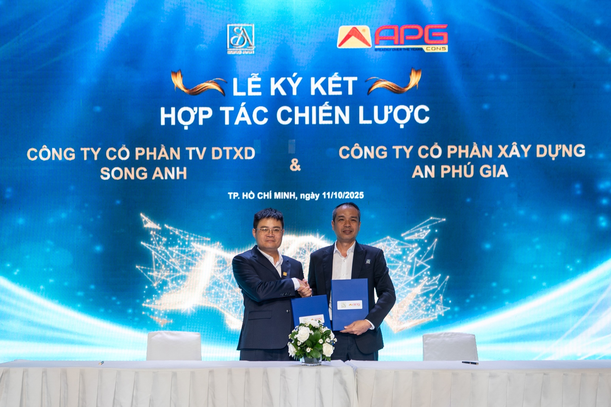 Tại buổi lễ, ông Võ Nhật Hoàng, Tổng giám đốc Song Anh, cũng thực hiện lễ ký kết hợp tác chiến lược với các đối tác kinh doanh, truyền thông gồm công ty CP Xây dựng An Phong, công ty CP Xây dựng An Phú Gia và ca nhạc sĩ A Tuân (CEO Simba Media Group).