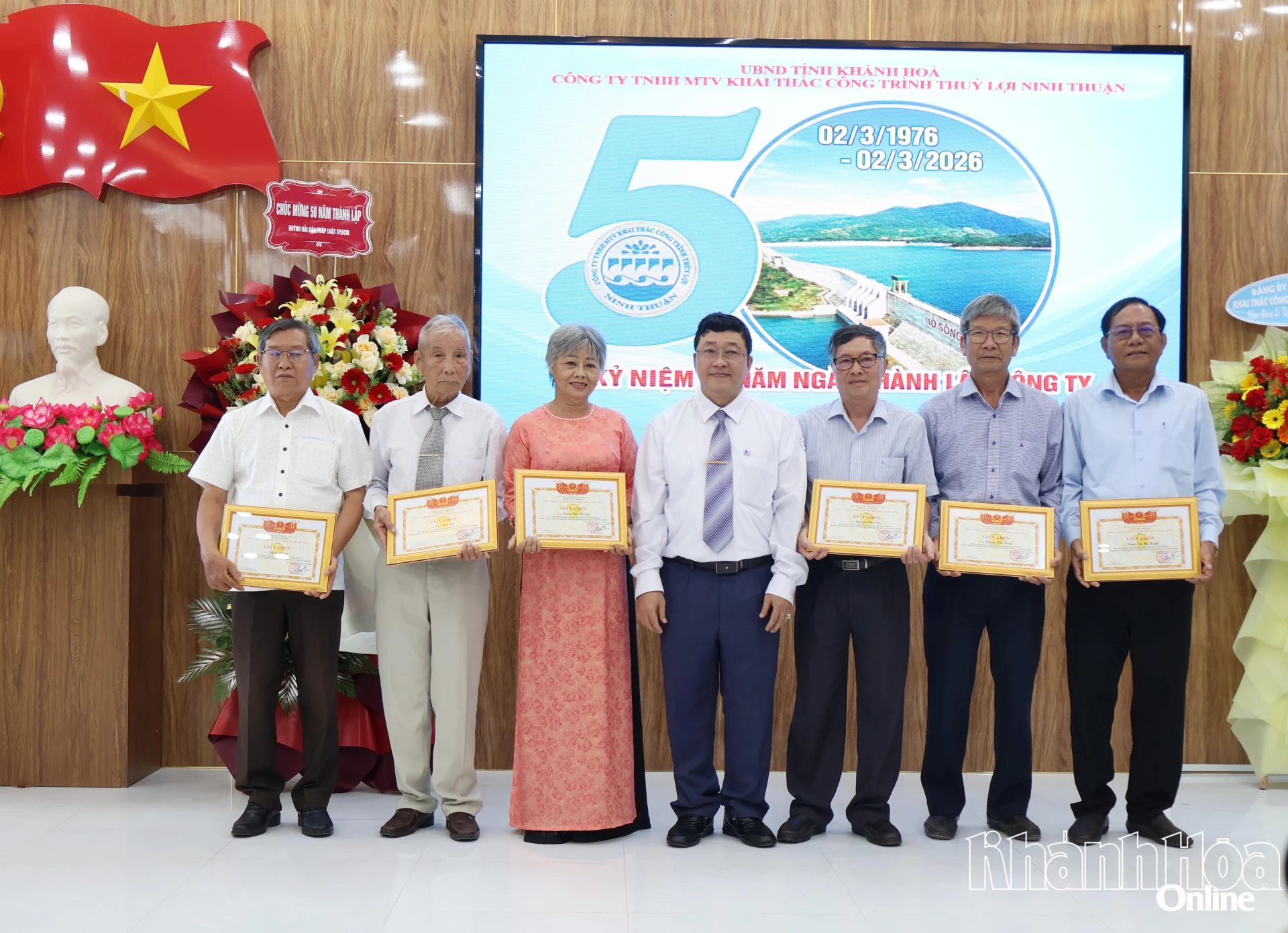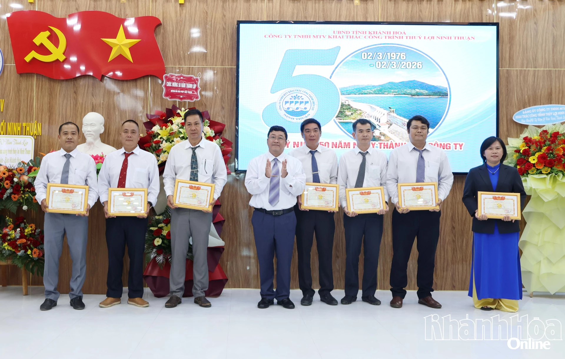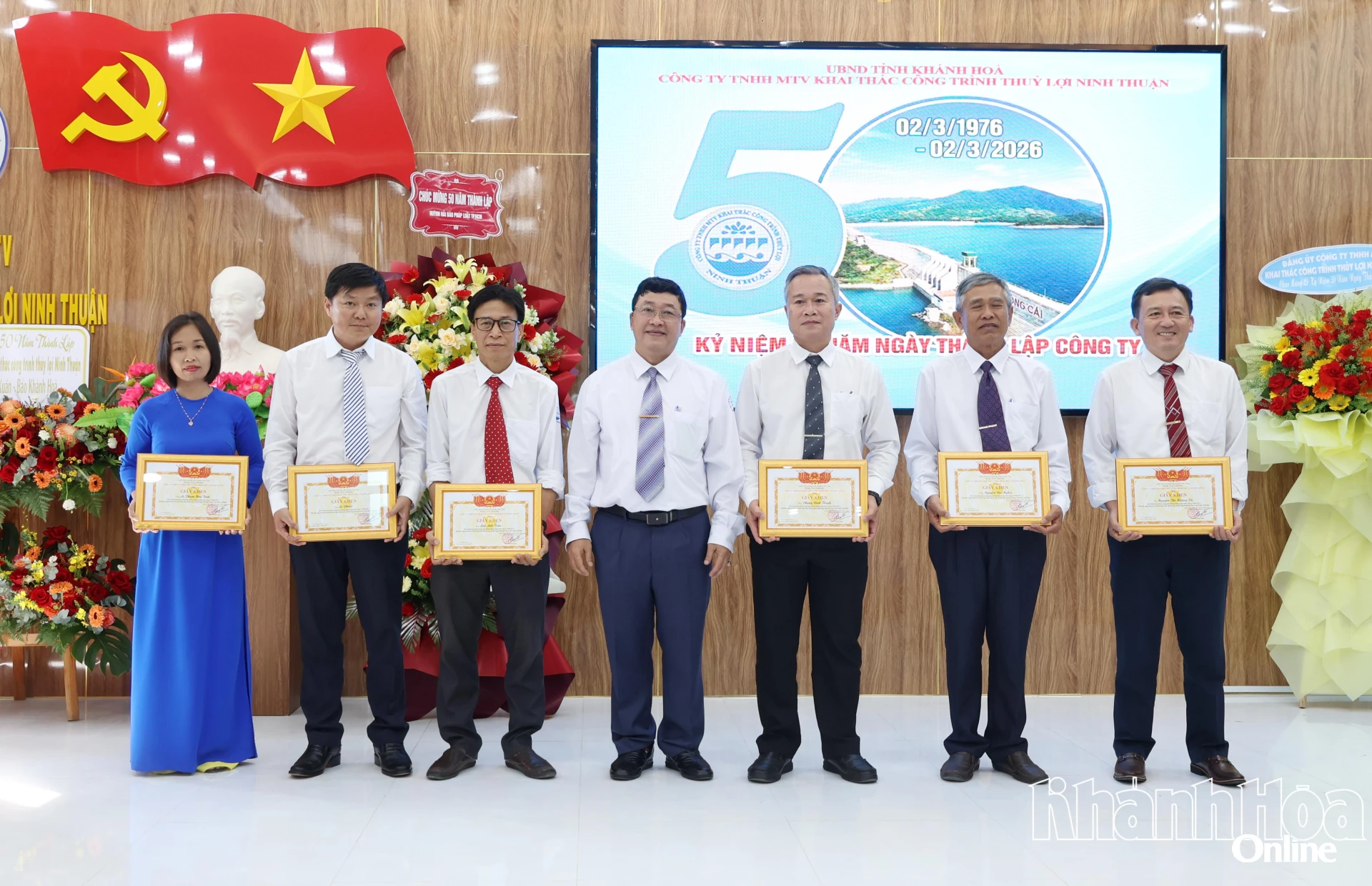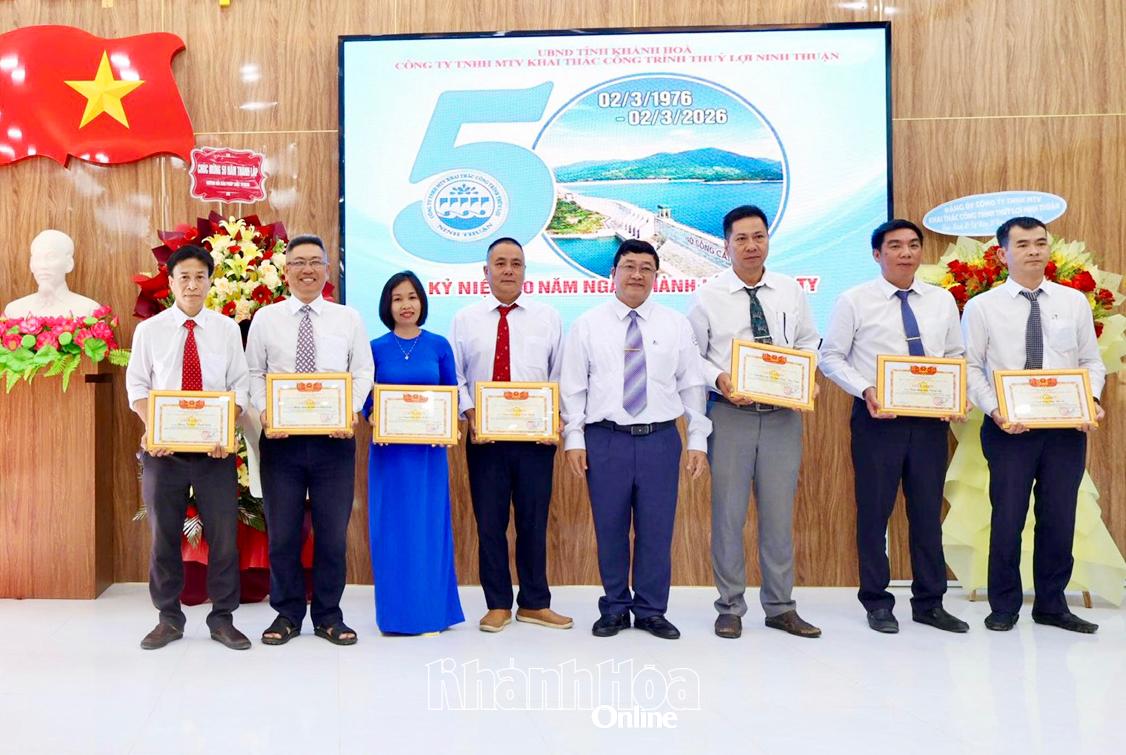 Dịp này, Công ty TNHH MTV Khai thác Công trình Thủy lợi Ninh Thuận tặng giấy khen cho 7 tập thể và 21 cá nhân có nhiều đóng góp trong quá trình xây dựng và phát triển công ty.