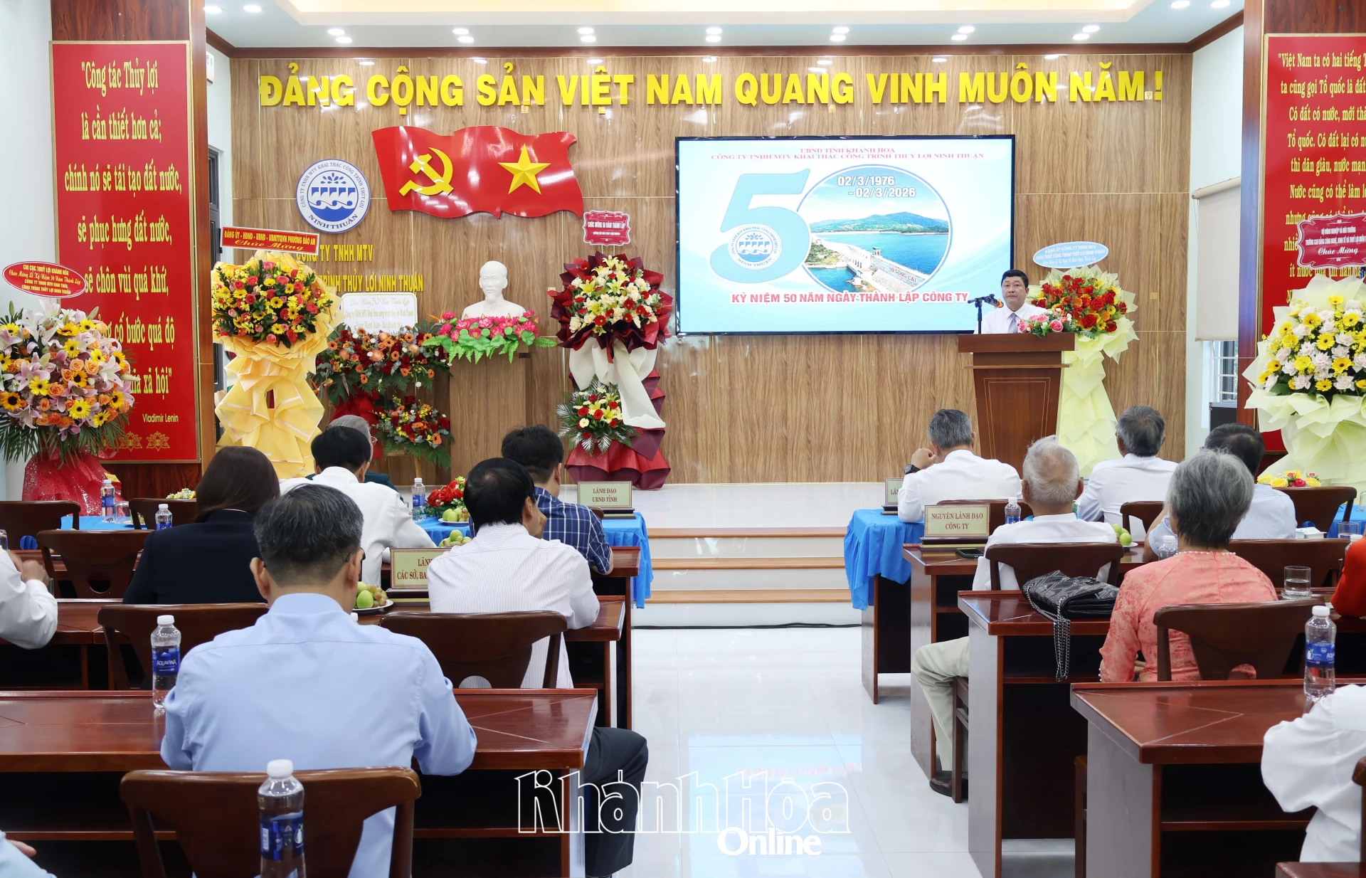 Chiều 2-3, Công ty TNHH MTV Khai thác Công trình Thủy lợi Ninh Thuận tổ chức lễ kỷ niệm 50 năm ngày thành lập (2-3-1976 - 2-3-2026). Đến dự có đồng chí Hoàng Thị Út Lan - nguyên Chủ tịch UBND tỉnh; lãnh đạo, nguyên lãnh đạo các sở, ngành, đơn vị, doanh nghiệp và các xã, phường phía nam của tỉnh.
