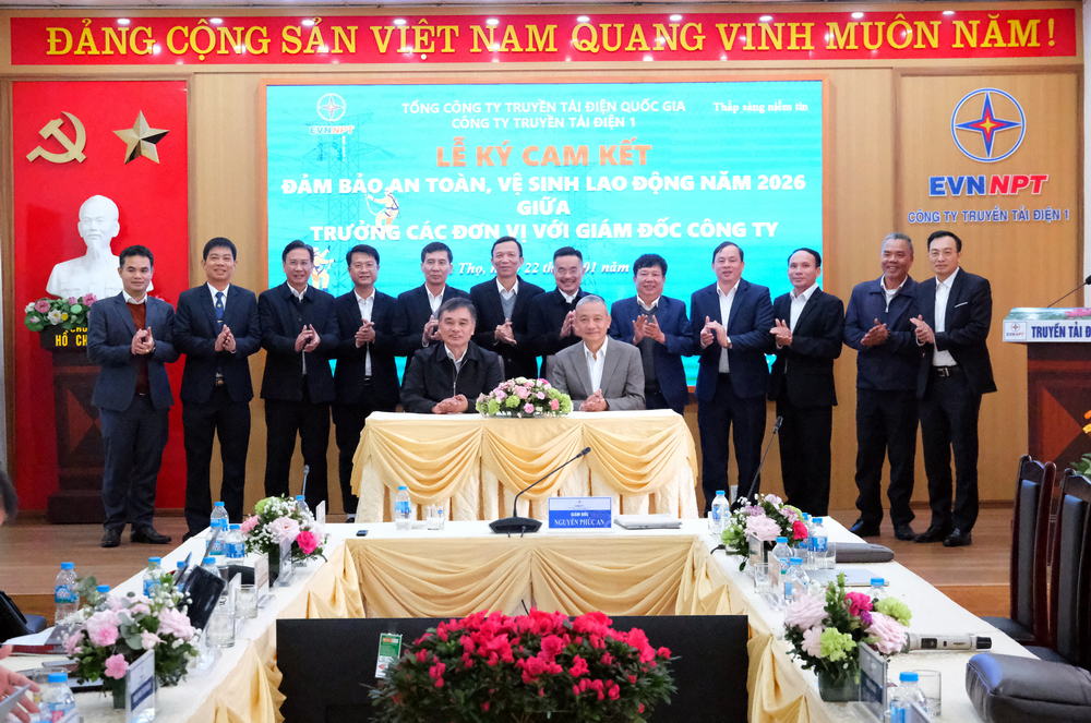 Xác định con người là yếu tố cốt lõi, bên cạnh việc thực hiện các chỉ tiêu kinh tế kỹ thuật, công tác an toàn luôn được PTC1 đặt lên hàng đầu. Cũng trong khuôn khổ của hội nghị, Công ty Truyền tải điện 1 đã thực hiện lễ ký cam kết đảm bảo an toàn, vệ sinh lao động năm 2026 giữa trưởng các đơn vị với Giám đốc Công ty. Đây là hành động cụ thể thể hiện quyết tâm không để xảy ra tai nạn lao động, xây dựng môi trường làm việc an toàn, chuyên nghiệp cho đội ngũ cán bộ công nhân viên trực tiếp vận hành lưới điện.
