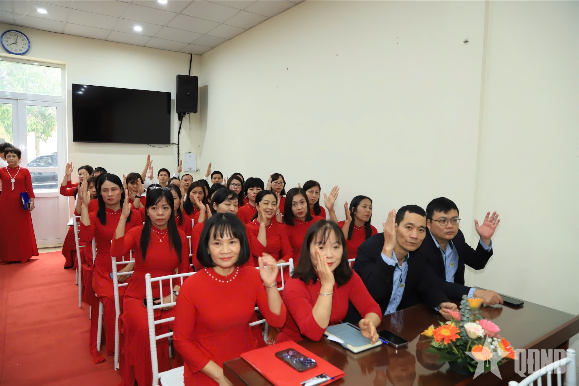Đại biểu người lao động công ty biểu quyết thông qua nghị quyết hội nghị.