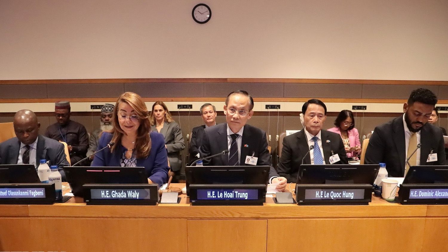 Ngày 22/9/2025, Bộ Ngoại giao và Bộ Công an Việt Nam phối hợp Văn phòng Liên hợp quốc về Phòng chống ma túy và tội phạm (UNODC) đồng tổ chức sự kiện “Con đường tới Hà Nội: Lễ mở ký Công ước của Liên hợp quốc về chống tội phạm mạng - Tôn vinh chủ nghĩa đa phương vì một tương lai số an toàn". Trong ảnh: Các đồng chủ tọa sự kiện. (Ảnh: TTXVN).