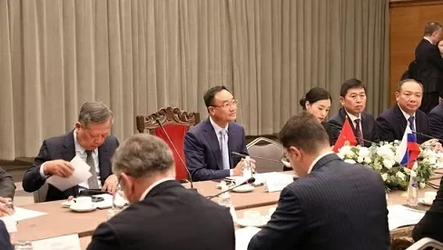 Thượng tướng Phạm Thế Tùng, Thứ trưởng Bộ Công an (thứ 6 từ trái sang) và Phó Thư ký Hội đồng An ninh Liên bang Nga Venediktov Aleksandr (thứ 5 từ trái sang) chủ trì Tham vấn an ninh cấp Thứ trưởng Việt Nam-Liên bang Nga lần thứ 4 ngày 11/12/2024. (Nguồn: Công an Nhân dân)