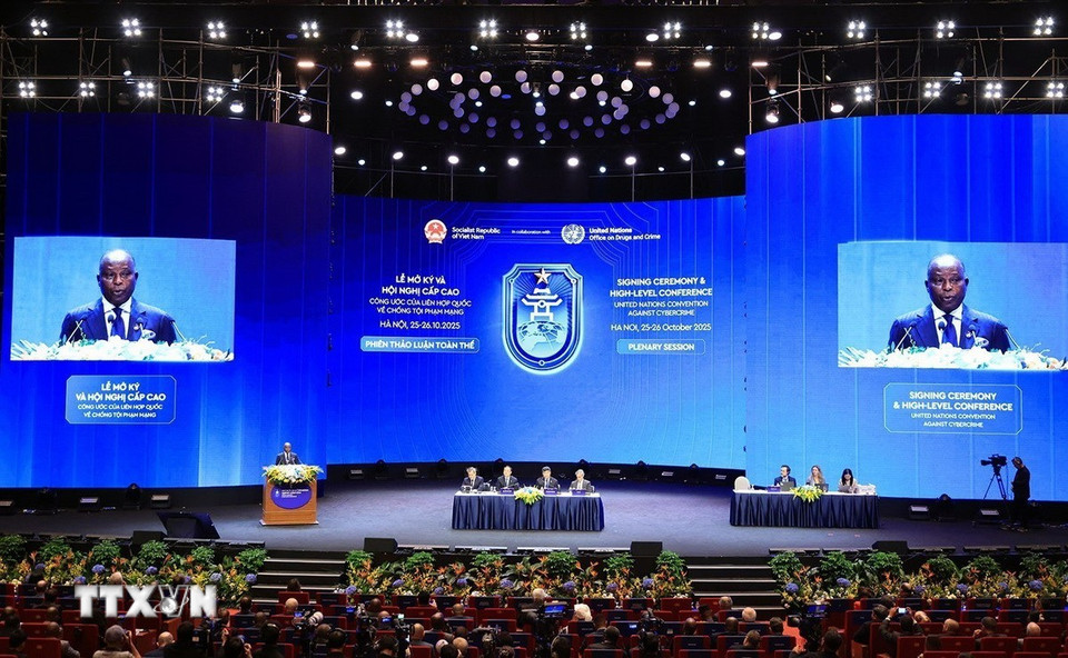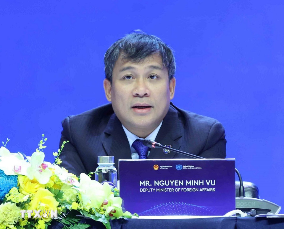 Thứ trưởng Thường trực Bộ Ngoại giao Nguyễn Minh Vũ điều hành phiên thảo luận toàn thể thứ hai. (Ảnh: Phương Hoa/TTXVN)