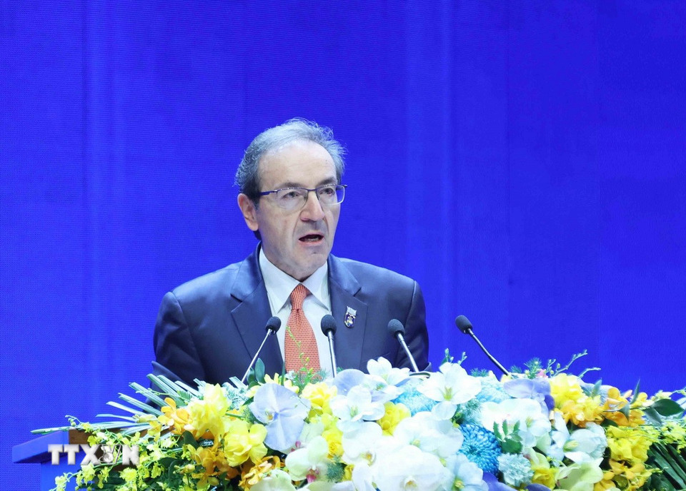 Thứ trưởng Bộ Tư pháp Cộng hòa Hy Lạp Loannis Bougas phát biểu tại Phiên thảo luận. (Ảnh: Phương Hoa/TTXVN)